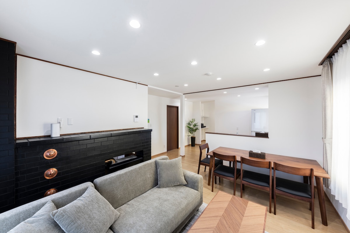 Stay in our luxury retreat near Sapporo, where nature and living harmonize. Built with Hokkaido wood and stone, the villa offers 3 bedrooms, 2 bathrooms, and 3 toilets, with stunning forest views. Relax by the wood-burning stove or on the terrace, where the forest is beautifully lit at night. Enjoy complimentary Hokkaido craft beer, sake, and wine. Ideally located, the villa is 20 minutes from Otaru, 35 minutes from Sapporo, and 103 minutes from Niseko, perfect for exploring Hokkaido.