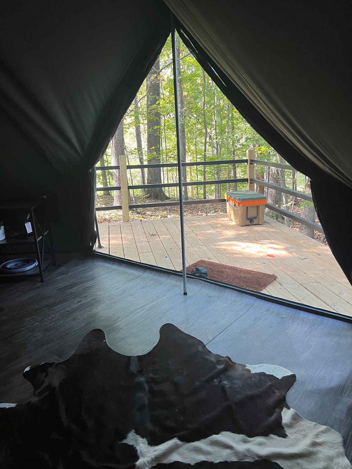 Մեր վրանը ՝ Hazel - ը, 20 ֆուտ է ՝ տախտակամածի հարթակում և գտնվում է անտառում ՝ մեր փոքրիկ, մասնավոր քեմփինգում և տնակում ։ Լրացրեք երկտեղանի մահճակալով և ֆուտոնով, որոնք կրկնապատկվում են որպես երկտեղանի քնելու տարբերակ ։ Այս վրանը կարող է կազմակերպել 5 հոգանոց երեկույթ ։ Ոչ էլեկտրական, բայց տրամադրում է հարմարավետություն և հիմնական պարագաներ ՝ տարվա բոլոր եղանակներին քեմփինգի համար: Ցնցուղարանի և զուգարանների մոտ ։ Հնարավորություն է ընձեռում անջատելու և հանգստանալու Նեշվիլից ընդամենը 25 րոպե հեռավորության վրա ։ Շքեղ քեմփինգն ամենալավն է ։