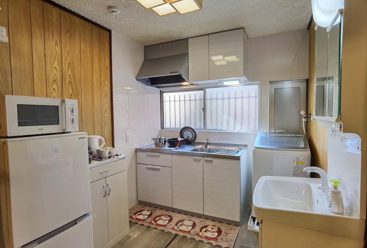 Աբենո թիվ 3. Առանձին տուն Տենոջի կայարանի և Կանսայի օդանավակայանի մոտակայքում ։ Ոտքով 7 րոպե մինչև Տենոջի կայարան ։ Մետրոյով 6 րոպե ուղևորություն դեպի Դոտոնբորի/Նամբա ։ Կատարյալ է ընտանիքների կամ ընկերների համար ։ Ընդարձակ 50 ¥3LDK ՝ անվճար Wi - Fi - ով, համակարգային խոհանոցով և լվացքատունով ։ USJ - ի և Օսակա դղյակի նման խոշոր տեսարժան վայրերի մոտակայքում ։ Վայելեք հարմարավետությունը Ճապոնիայում: Սենյակների հարմարություններ ՝ - Նոր է բացվել 2022 թվականի դեկտեմբերին - Լիովին կահավորված - Առկա է լվացքի մեքենա - Դիտեք Netflix - ը, Hulu - ն և այլն «Առցանց վիդեո ծառայությունները պահանջում են հաշիվներ ։