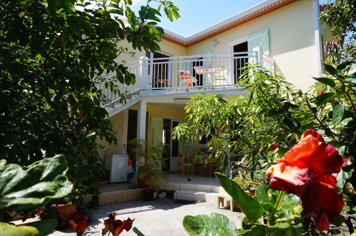 Come and enjoy this spacious and beautiful room. Totally independant (with private bathroom) in a very well placed family house. A quiet ant nature spot only some minutes away from Saint Pierre, the beach, and main roads for your visits. A handy kitchen in the back yard and direct access to our natural stone pool with massage jets to cool off and relax.