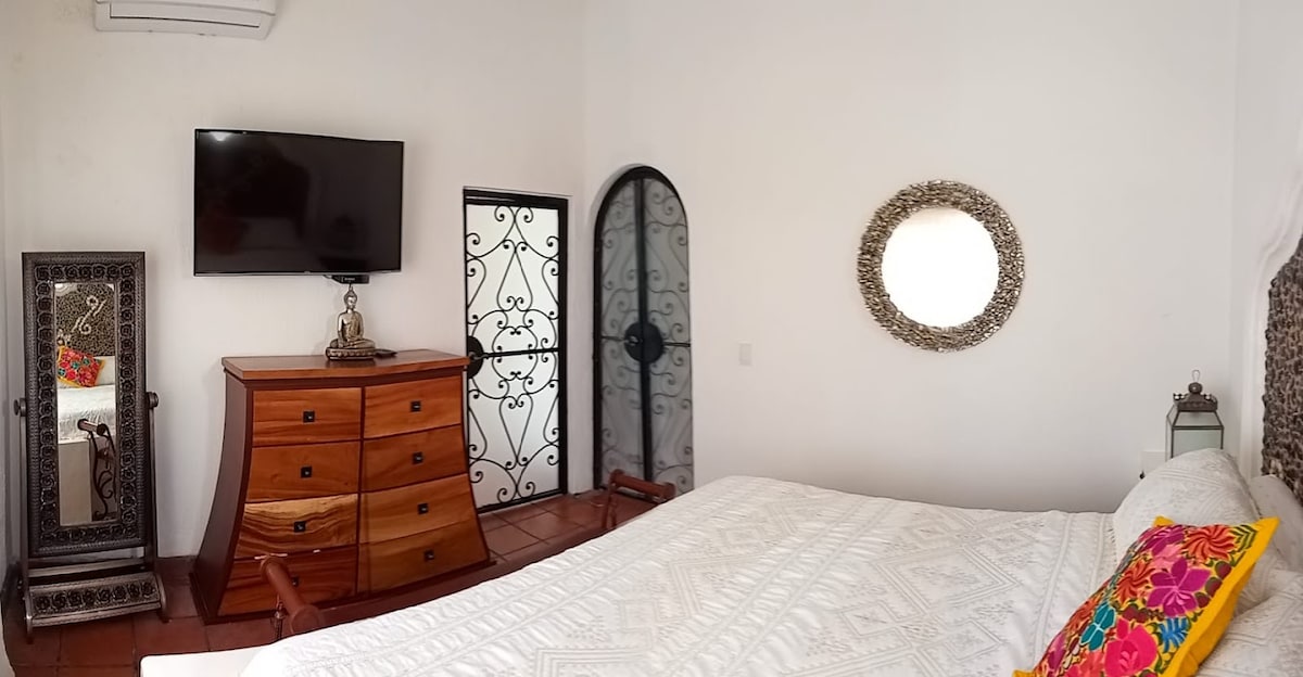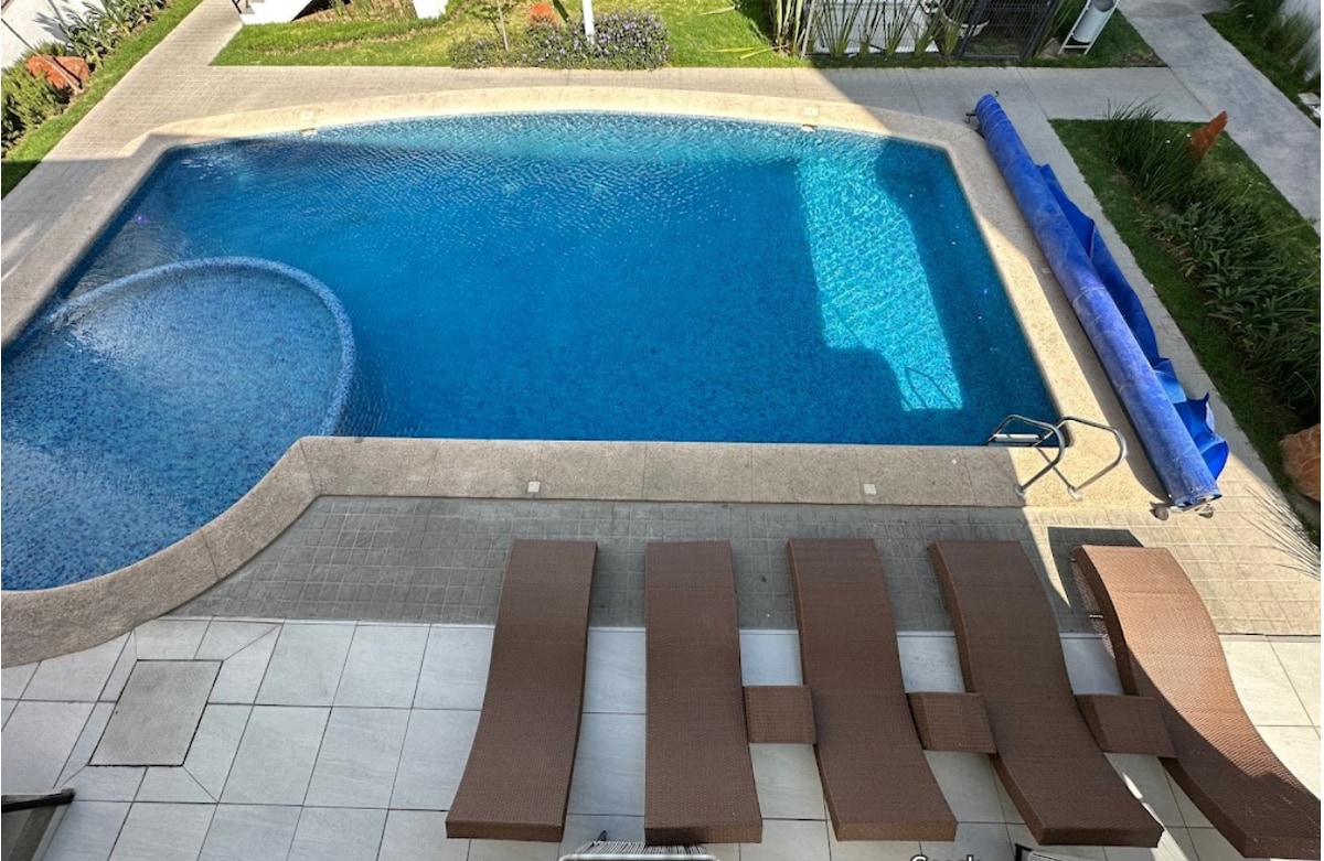 Relájate en este espacio tranquilo y elegante, ideal para pasar unos días de descanso. Con alberca privada climatizada ( 30 a 32 grados), relajante jardín, terraza abierta, cocineta y asador esta completamente equipada. Cuenta con 2 recamaras con un excelente diseño y preparadas para que disfrutes de un descanso placentero, con cama King en la principal y Queen en la segunda recamara ✔ Minisplit en ambas recamaras. ✔ Mini enfriador en recamara principal ✔ Internet en toda la casa de 500 Megas