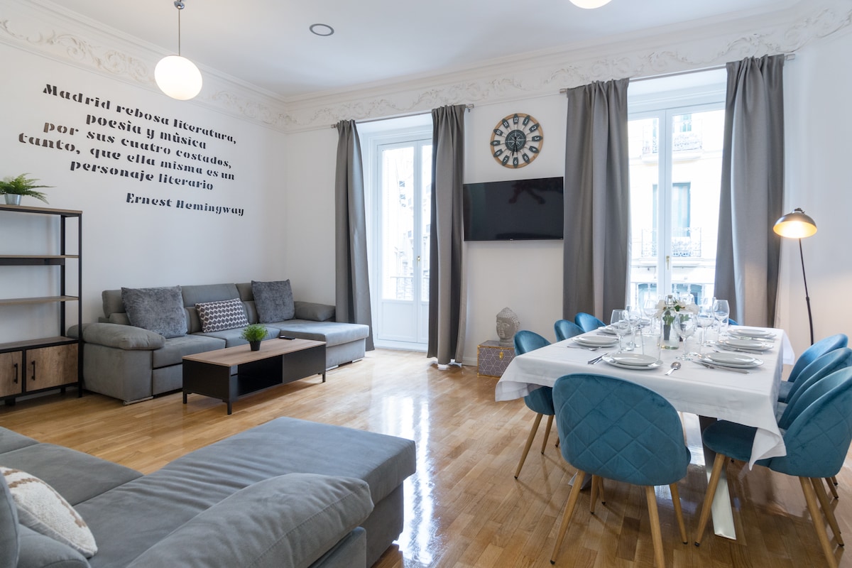 Quiet and comfortable stay in the charming Barrio de las Letras, just a few minutes from Atocha Station. Air conditioning · ELEVATOR · (exceptional WiFi) 2 Bedrooms: Bedroom 150×190 cm bed Small bedroom with two 90×190 cm bunk beds Fully equipped apartment and excellent location, ideal for: Working/Business trips, Studies, Medical, Family visits. Please read the HOUSE RULES before booking and proceed only if you agree with all terms, including the late check-in fee. In-person check-in.