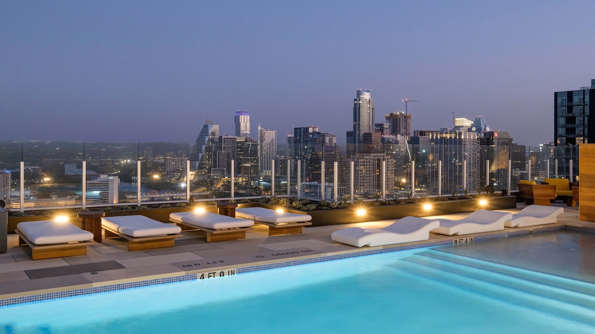 Luxury high rise condo in the heart of the Rainey Street! The best location for living, entertaining, and experiencing SXSW! Centrally located to everything downtown Austin has to offer, Austin City Limits, Rainey street bars and restaurants, 6th Street, live music, museums, Lady Bird Lake all within minutes! The roof top pool, cabanas, and entertaining spaces on the 33rd floor are literally breathtaking with amazing views of the Austin downtown skyline and Lady Bird Lake