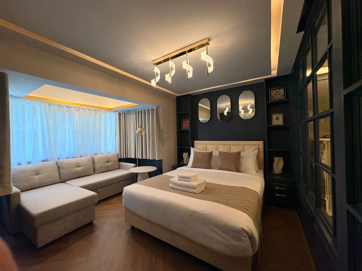 Բացահայտեք այս գեղեցիկ ձևավորված սենյակի ժամանակակից հմայքը ։ Լիովին կահավորված է բոլոր էլեկտրական սարքերով, որոնք բարելավում են ձեր այցերի հարմարավետությունը ։ Ամբողջ տարածքը ձերն է լինելու [ննջասենյակ, լոգասենյակ,խոհանոց և հյուրասենյակ] Փափուկ և հարմարավետ ներքնակ մեծությամբ և մուջիի մահճակալների հավաքածու ։ Անվճար Wi - Fi , 60"SmartTV + անվճար Netflix, օդը մաքրող միջոց, լվացքի մեքենա ՝ չորացման գործառույթով , արդուկ , միկրոալիքային վառարան , սառնարան, էլեկտրական գազօջախ և խոհանոցային պարագաներ ։ Լոգասենյակ ՝ անձրևային ցնցուղով և տաք ջրի մեքենայով ։