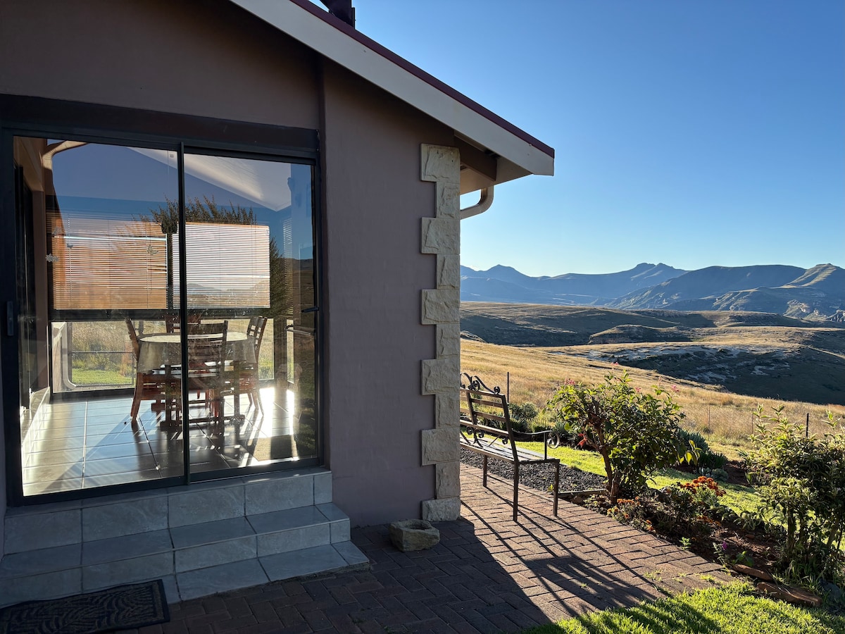 Ջոնն ու Դեբբին ողջունում են ձեզ խաղաղ, ճաշակով ձևավորված, ինքնուրույն հյուրերի քոթեջ Բերգվյու մասնավոր սեփականությունում ՝ Կենտրոնական Դրակենսբերգում, որը Համաշխարհային ժառանգության վայր է ։ Queen մահճակալ, ամբողջական dstv, առաստաղի օդափոխիչներ, խոհանոց, լաունջ, լոգասենյակով լոգասենյակ ՝ ցնցուղով, երբ մտնում եք Երկնքի այս փոքրիկ կտորը երկրի վրա: Գեղեցիկ տեսարաններ, արշավներ, բացօթյա միջոցառումներ հենց ձեր շեմին: Ռեստորաններ, սուպերմարկետ, հովանոցներով շրջագայություն, սողունների և ռեպտորի կենտրոններ մոտակայքում: Արգելոցից մի փոքր հեռու ։