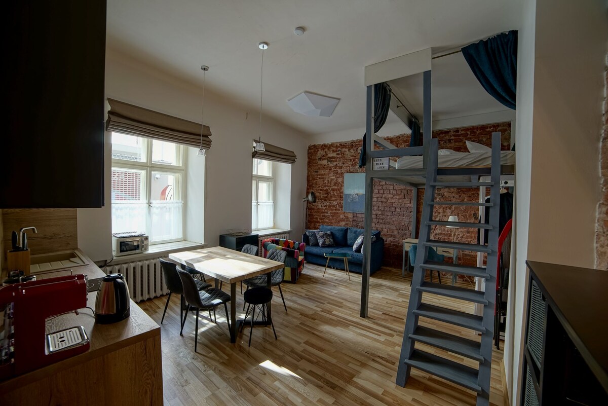 Հին Ռիգա լոֆթի ոճի դիզայնի ստուդիա ՝ լրացուցիչ հարմարություններով