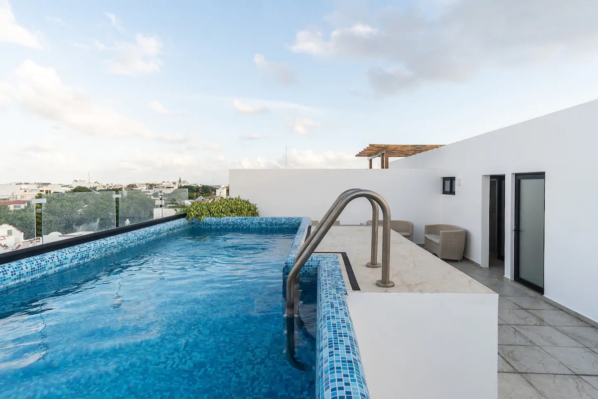 Հատուկ լոֆթ ոճի բնակարան Պլայա դել Կարմենի սրտում ։ Հայտնի 5 - րդ պողոտայից ընդամենը 3 թաղամաս հեռավորության վրա ՝ լողափից մի քանի քայլ հեռավորության վրա ։ Դուք հեշտությամբ կհասնեք հիմնական խանութներ, մթերքներ և ռեստորաններ: Ավտոբուսի կայարան դեպի օդանավակայան և Թուլում 1 թաղամաս հեռավորության վրա ։ Լողավազանից բացվում է օվկիանոսի տեսարան. դուք կվայելեք քաղաքի լավագույն հարմարությունները: Մարզասրահ, 3 ջակուզի, մերսման սենյակ և անվճար կայանատեղ շենքի ներսում, լվացքատուն ։ Հարմարավետ և նրբագեղ այց PdC - ում ձեր հանգստի համար ։ Հասանելի է անհատական մարզիչ և յոգա ։