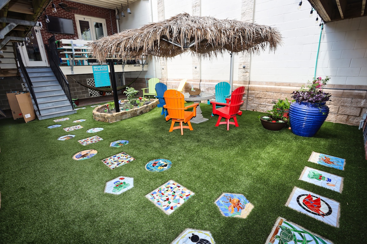 Prime Location Beautifully renovated and thoughtfully designed beach retreat, blending modern luxury with extra amenities. Walk to the famous Strand for dining, shopping, art, and nightlife. Just steps from Stewart & Porretto beaches, cruises, and UTMB. Minutes by car to Pleasure Pier, Moody Gardens, Schlitterbahn, and the Seawall. Historic charm meets comfort with 2 beds, 2 baths and a queen sofa bed. King bed in the primary suite. Ideal for families, couples, or solo adventurers.