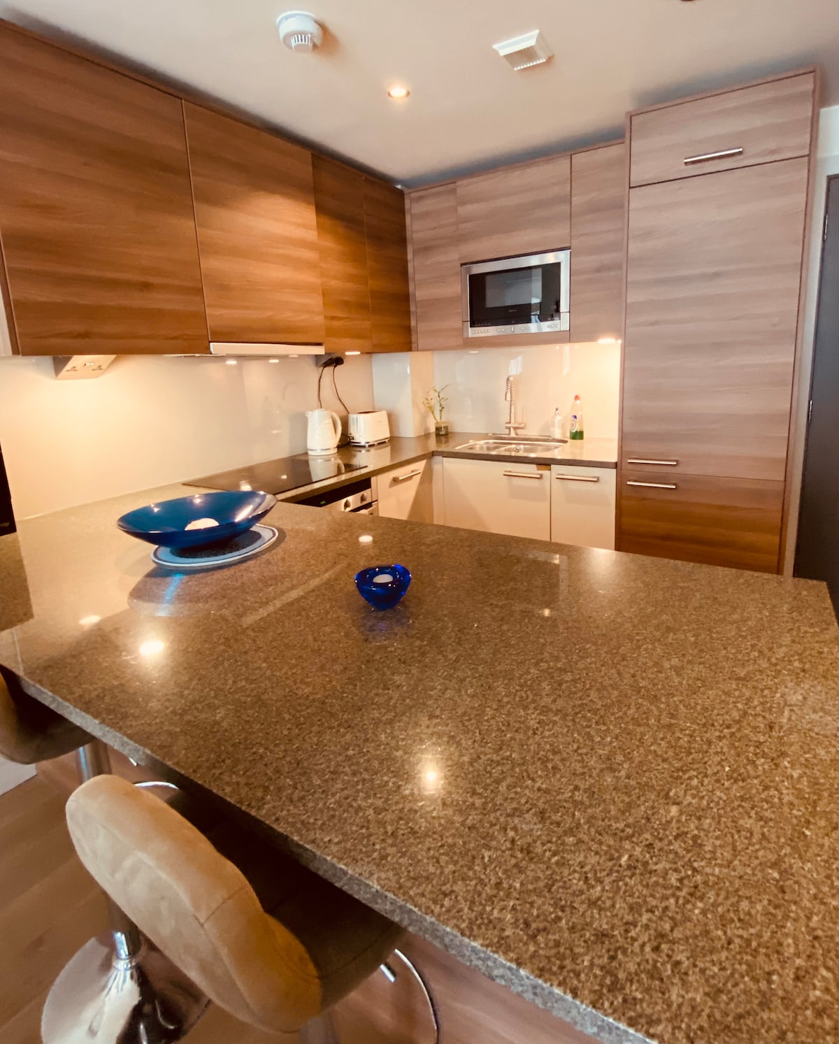 A spacious 1-bed Manhattan style flat in the prestigious development, Chelsea Creek. Finished to an excellent standard, the property has a double bedroom with fitted storage and a modern bathroom. The kitchen is contemporary and fully equipped and open plan with the reception area. The property is walking distance to Fulham Broadway underground or directly next to Imperial Wharf over ground station. There is also access to gym and spa for long staying guests only (= 14 NIGHTS MINIMUM)