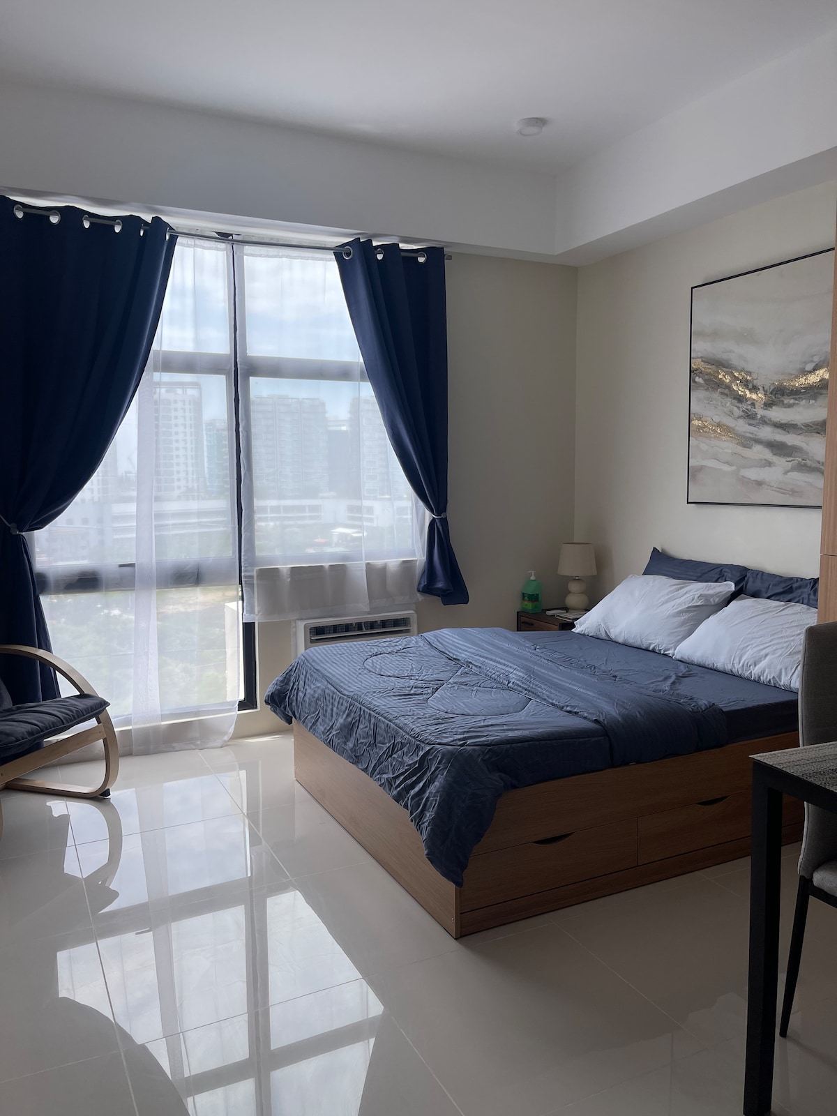 Executive Modern 1BR condo only 15 minutes to Airport Quality Queen Size Bed Wi-Fi/SmartTV/FreeNetflix Lockable Safe Smart Lock Access Hot Shower, Bidet Fully Equipped Kitchen Free Drinking Water from Japanese Dispenser Wide balcony,Sea-views & Breezes Gordon Ramsay/Japan/Korean Restaurants,Concierge,Pools,24hrSecurity Supermarket,7/11,Bakery,Starbucks,McDonald’s,Pharmacy,ATMs Beach Passes Php350/person NOTE: Up to 16 hour daily Construction is next door.Thus our daily rate is a 30% discount.