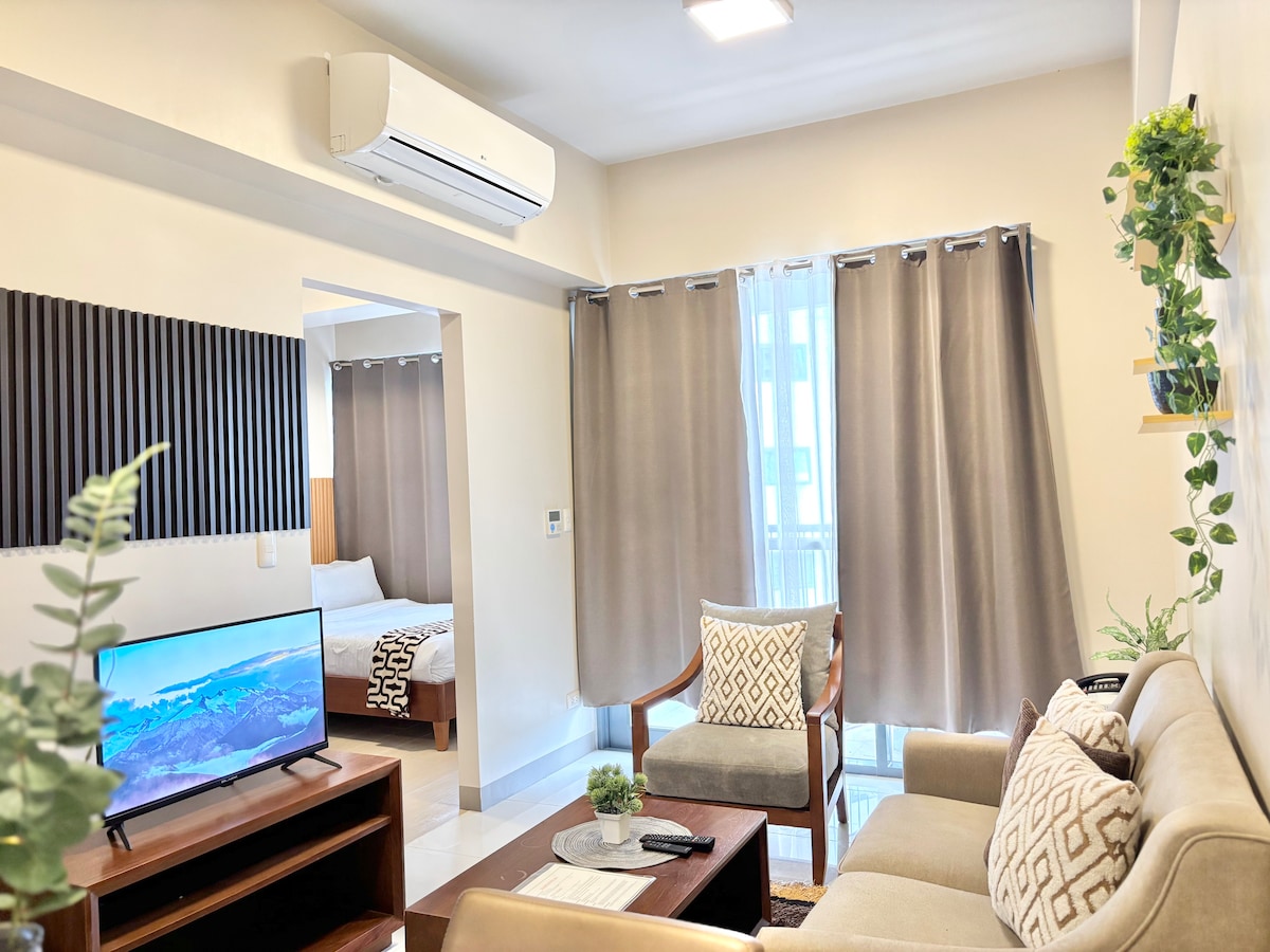 Հարմարավետ 1BR հարկաբաժին The Mactan Newtown - ում, ընդամենը մի կարճ ճանապարհ դեպի լողափ, ռեստորաններ և խանութներ: Վայելեք հարմարավետ մահճակալ, արագ Wi - Fi, խոհանոցիկ և պատշգամբ ։ Հյուրերն ունեն անվճար մուտք դեպի լողավազան, իսկ լողափի մուտքն ընդամենը 350 է ՝ մեկ անձի համար, որն ունի անեզր լողավազանի փորձառություն ։ Իդեալական է հանգստի և հարմարավետ կղզի փնտրող զույգերի կամ միայնակ ճանապարհորդների համար ։ Չորս հոգանոց ընտանիքը նույնպես ողջունելի է ։ Օդանավակայանի և լավագույն տեսարժան վայրերի մոտակայքում ։