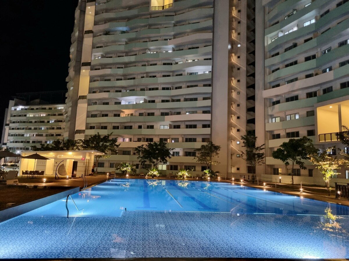 Հանգստացեք և հանգստացեք այս ընդարձակ և խաղաղ 1 ննջասենյակի հարկաբաժնում ՝ պատշգամբով, որը գտնվում Է ՀԱՄԱԳՈՐԾԱԿՑՈՒԹՅԱՆ ԴԱՐՈՒՄ ԳՏՆՎՈՂ ԲՆԱԿԱՎԱՅՐԵՐՈՒՄ: Ներառված է՝ Ազատ մուտք դեպի լողավազան 4 անձի համար Արագ Wi - Fi Սմարթ հեռուստացույց ՝ Netflix - ով Օդորակում Տաք և սառը ցնցուղարան Առջևի բեռնման լվացքի մեքենա Երկտեղանի մահճակալ Բազմոց - մահճակալ Մահճակալներ, բարձեր և մխիթարիչ Սառնարան Սալօջախ Միկրոալիքային վառարան Բրնձի կաթսա Էլեկտրական թեյնիկ Լոգարանի սրբիչներ Ինտերկոմ