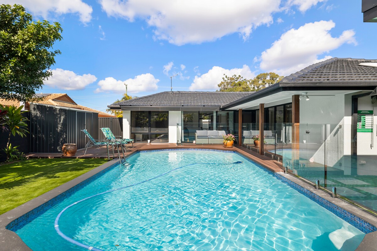 - Last minute bookings welcome:) - Pool clean & ready to swim 24/7 - Whole House - Family & group friendly - Classy restaurants. Trendy, friendly, niche - Coffee Machine - Parking, easy, free - Pet friendly. Safe - Message, quick response:) Enjoy a fresh, modern space, all the comforts of home - Coffee shops, restaurants, Harris Farm supermarket, 24/7 gym - Experience Surfers Paradise like a local:) - Air conditioning, ducted, zone adjustable, powerful - Fully equipped entertainers kitchen