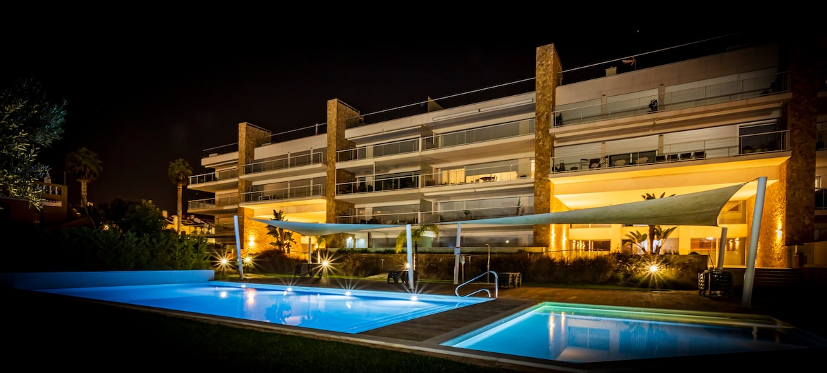 Գեղեցիկ և անկաշկանդ այգու տեսարանով բնակարան մասնավոր կոնդոմինիումում ։ Լիովին կահավորված, 65" SmartTV, կաբելային հեռուստատեսություն, Wi - Fi, բացօթյա լողավազան, թենիսի կորտ և մասնավոր ավտոկայանատեղի: 5 րոպե հեռավորության վրա ոտքով դեպի լողափ կամ Մերա շերտը: 15 -20 րոպե քայլեք լողափով դեպի Ալբուֆեյրայի հին կենտրոն ։