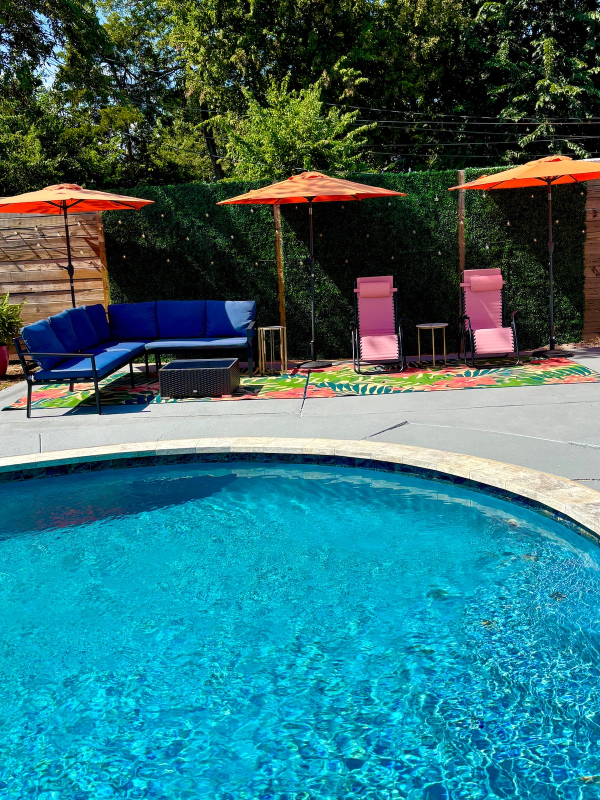 Գեղեցիկ մեծ խմբով հանգիստ ՝ առանձին լողավազանով
