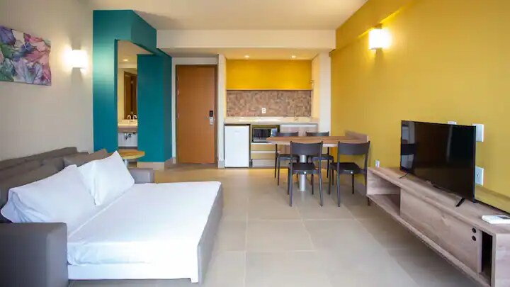 Մեր Բնակարանը գտնվում է Solar das Aguas հյուրանոցում ։ Flat հասկացությունն այն է, որ այն մի ամբողջ բնակարան է հյուրանոցում ։ Նարնջագույն թերմասի հարևանությամբ գտնվող խոհանոցով բնակարան, ժամանակակից և հարմարավետ տարածք ՝ հյուրանոցային և հյուրանոցային սպասարկման հարմարավետությամբ և հյուրի տրամադրության տակ գերծանրաբեռնված կառուցվածքով ՝ հանգստի ավելի քան 20 տարբերակներով ։
