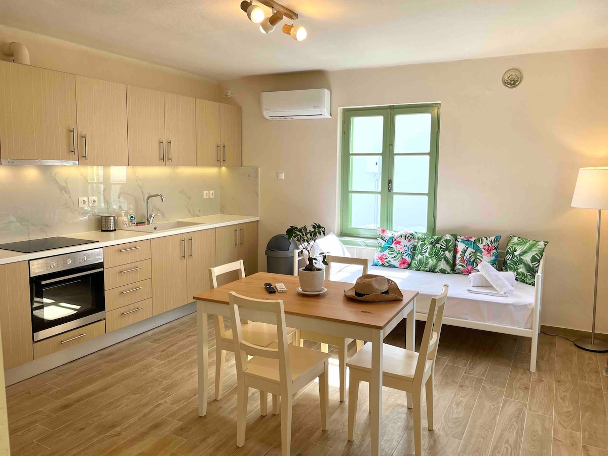 Ինա օրհնյալ վայրը, որը մենք ստեղծել ենք մեծ խնամքով, անկախ տունը լիովին վերանորոգված է: 1905 թվականին ընտանիքի նախնիները կառուցել են այս շենքը ժամանակի նեոկլասիկ միտումով ՝ փոքր խանութի օգտագործման համար: Այսօր մենք մտածեցինք վերանորոգել այն և հարմարավետություն և հանգստություն առաջարկել այցելուին ՝ հիդրանիտաներով, պտղատու ծառերով և Էգեյան ծովի անծայրածիր կապույտի տեսարանով կանաչ ագարակում ։ Հաջորդ դուռը 1737 թվականի հին թաունհաուսն է