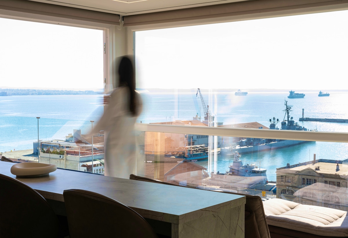 Զգացեք քաղաքը ՎԵՐԵՒԻՑ ՝ Սալոնիկի սրտում գտնվող մեր պրեմիում տանիքի առանձնատանը, որը գտնվում է աշխույժ Լադադիկա թաղամասի մոտակայքում ՝ Արիստոտել հրապարակից ընդամենը 5 րոպե հեռավորության վրա ։ Վայելեք ծովի և քաղաքի լանդշաֆտի հիասքանչ տեսարանները ՝ բացօթյա ջակուզիով և հարմարավետ հանգստյան գոտիով: Ներսում վայելեք հանգիստը ՝ օգտվելով լոգարանի շքեղ փորձառությունից ։ Կատարյալ է ռոմանտիկ հանգստի կամ հանգստի համար ։