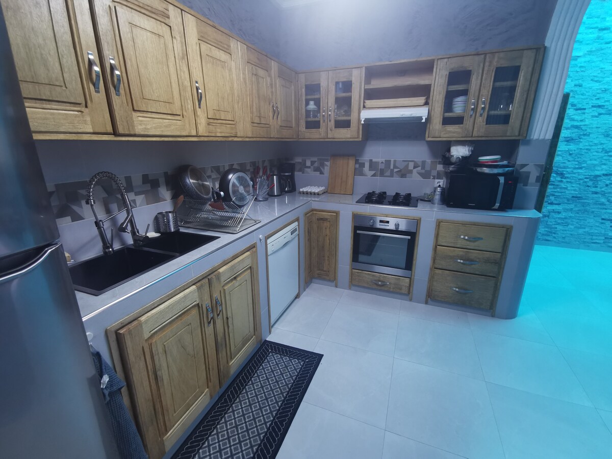 Լիովին կահավորված օդորակիչով տուն, որը գտնվում է լողափից 500 մ հեռավորության վրա գտնվող հանգիստ տարածքում ։ Կազմված է խոհանոցից , սեփական լոգասենյակներով հագեցած 2 ննջասենյակներից, պտղատու ծառերով ( բանան , գրեյպֆրուտ և կիտրոն) և լողավազանից ։ Տրամադրեք էլեկտրաէներգիայի, գազի և ջրի սպառման վճարներ (նախապես վճարված հաշվիչ), եթե լողավազանը չի օգտագործվում արևային էներգիայի համար ։ Մեր խնամողն ապահովում է իր պաշտպանությունը ։ Կիսակառույց տուն