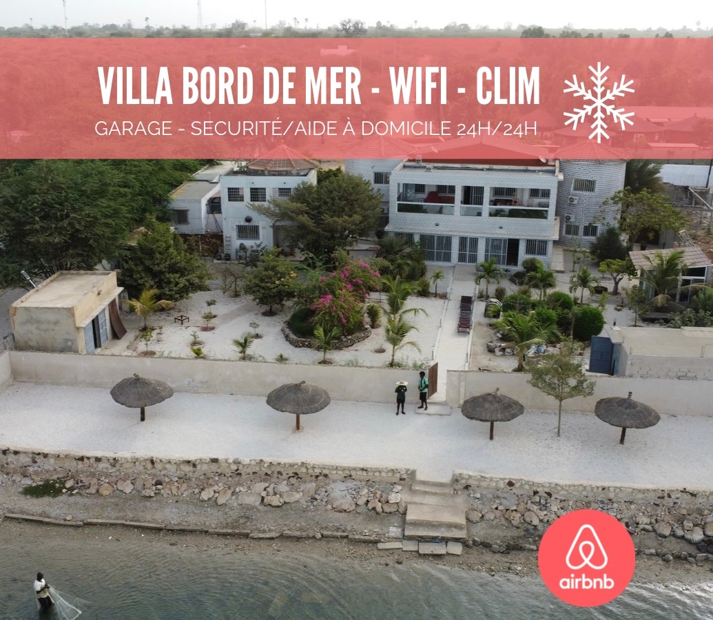 Սենեգալի փոքրիկ ափի ամենագեղեցիկ լողափում, Գեղեցիկ ափամերձ վիլլա ՝ անեզր լողավազանով, մեծ հյուղակով, մեծ պերգոլայով, չորս ննջասենյակ, երեք լոգասենյակ, 1 առանձին և 2 անկախ զուգարան, ճաշասենյակի հյուրասենյակ ։ Ծովի հիասքանչ տեսարանով, Նոր անկողնային պարագաներ, գեներատորԳենների հավաքածու Կապված Wi - Fi, Bluetooth, CanalplusMicroondesworldmenu NespressoFrigo ամերիկյան գերարագ մանրաթելային ինտերնետ
