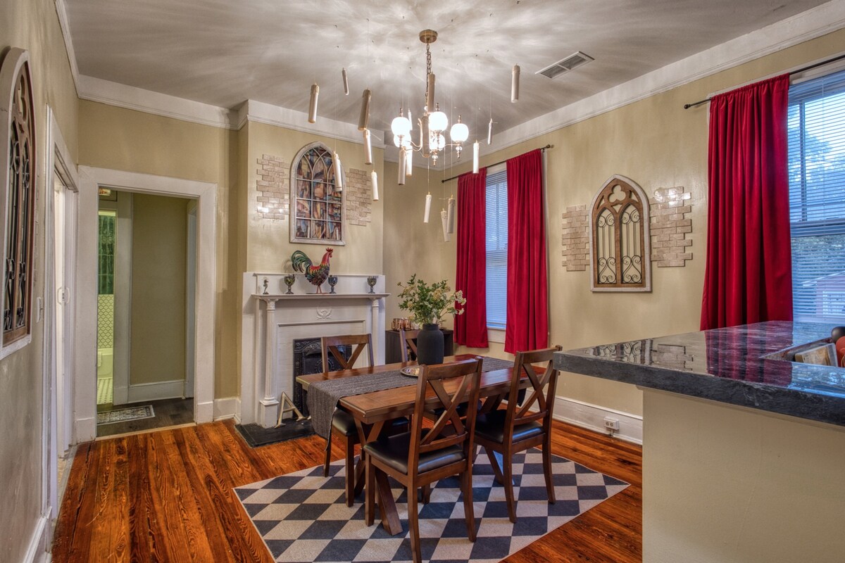 Charming Unit C studio apartment in a historic 1901 Victorian mansion near downtown Augusta! This cozy second-floor space features a queen bed, full bath, and a fully stocked kitchen. Enjoy shared access to a stylish living room and washer/dryer. Perfect for solo travelers or couples looking for a unique stay with modern comforts and vintage charm. Just a short drive to local attractions, restaurants, the beautiful Riverwalk, and right next door to the Fox’s Lair, a hidden underground bar!