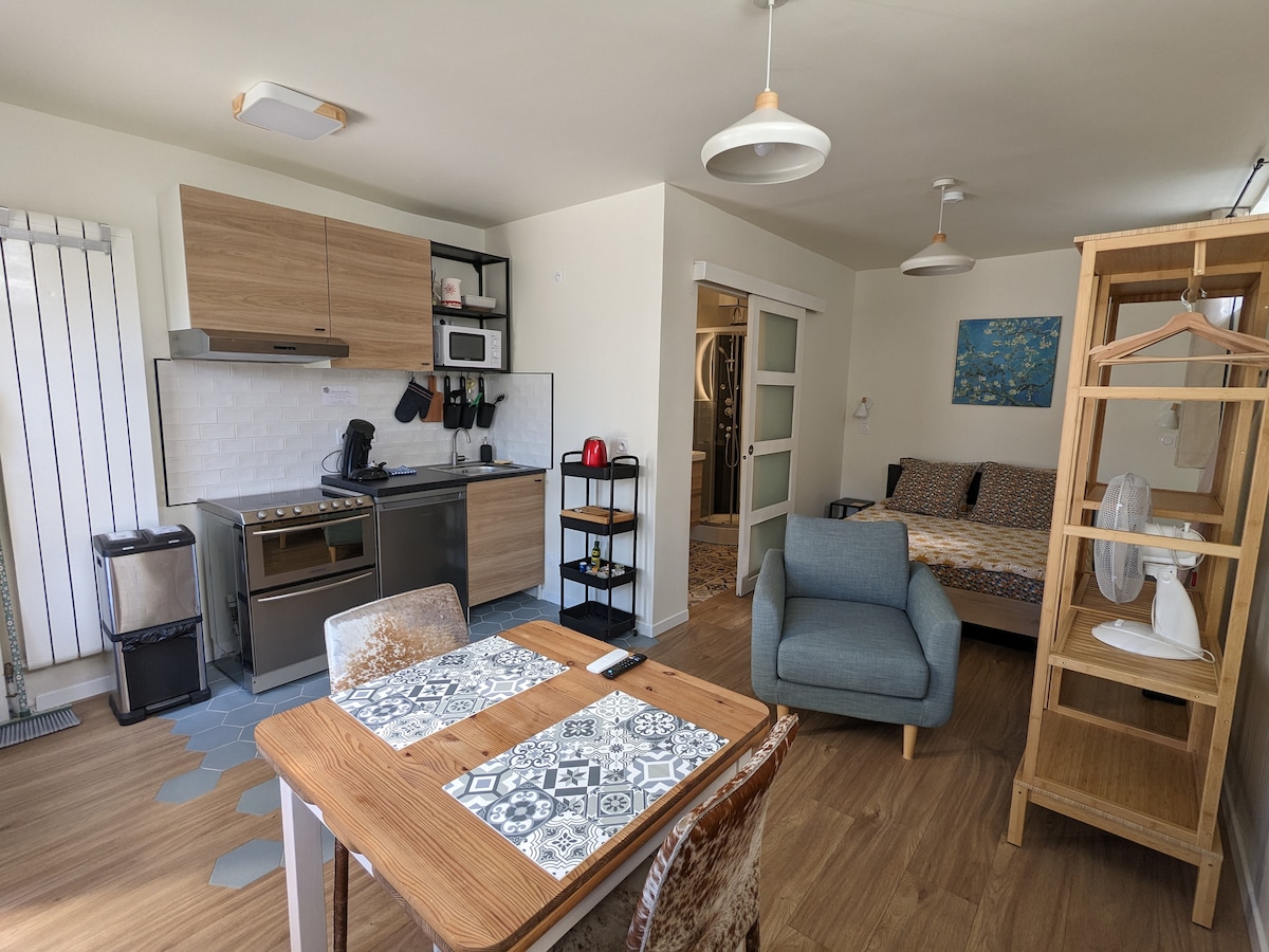 Մենք ողջունում ենք ձեզ անկախ ստուդիայում, որն ունի կենտրոնական տեղադրություն ՝ միաժամանակ առաջարկելով մասնավոր հանգստի հանգստություն ։ Աննեմասե երկաթուղային կայարանը շատ մոտ է (6 րոպե ոտքով), ինչը թույլ կտա 30 րոպեից հասնել Ժնև (Կոռնավինի կայարան )։ Աննեմասի կենտրոնում գտնվող խանութներն ու ռեստորանները նույնպես ոտքով հեռավորության վրա են: Ստուդիան հագեցած է առանձին այցի համար ՝ հեռուստացույցով և Wi - Fi - ով ։ Կարող եք վայելել ընդհանուր այգի և առանձին կայանատեղի ։