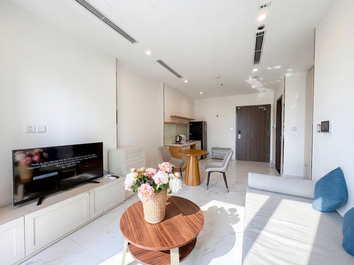 🍃Ben’s Homes xin chào🍃 Căn hộ chúng tôi hân hạnh chào đón những ngày hè rực rỡ .Studio Tivi 55” netflix and chill. Căn hộ với view hoàng hôn 8p rực rỡ chiều tà, view hồ bơi nội khu. Đã sẵn sàng bếp, tủ lạnh, xông tinh dầu tự nhiên. Gần Vicom Mega Mall, CGV và cả Vin Wonder. Sẵn sàng cho thuê gói 3h. Ngoài ra chúng tôi sẵn sàng cho mượn xe đạp để thăm quan Vinhomes. Căn hộ với tone lạnh mát mẻ bình yên, sofa êm ái, cây xanh trang trí và rất nhiều sách có sẵn để bạn trãi nghiệm.🍃