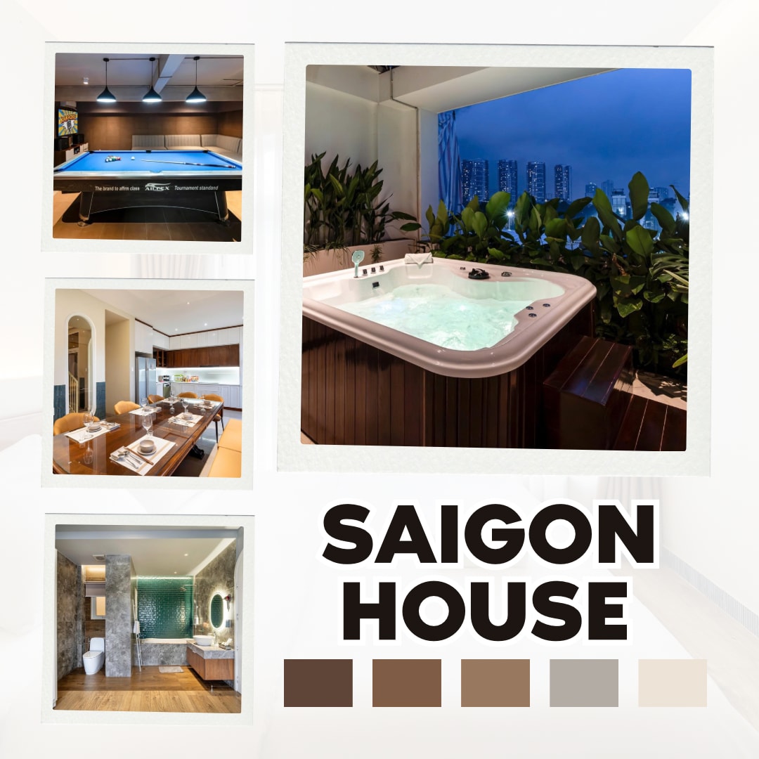 Շքեղ 6 սենյականոց վիլլա, ջակուզի, տեսարան տանիքից դեպի քաղաքի կենտրոնը։ Գտնվում է բնակելի թաղամասում՝ Դայմոնդ Այլենդի մոտակայքում, Թու Թիեմ կամրջից ընդամենը 5 րոպե, 1-ին թաղամասի կենտրոնից 10 րոպե, Vincom Mega Mall-ից 8 րոպե և Տան Սոն Նհատ օդանավակայանից 20 րոպե հեռավորության վրա։ «Սայգոն վիլլա» նոր վիլլան է՝ ժամանակակից արդյունաբերական դիզայնով, որը առաջարկում է շքեղ, բացարձակապես մասնավոր տարածք և 5 աստղանի հանգստավայրի հարմարություններ Հոշիմինի սրտում