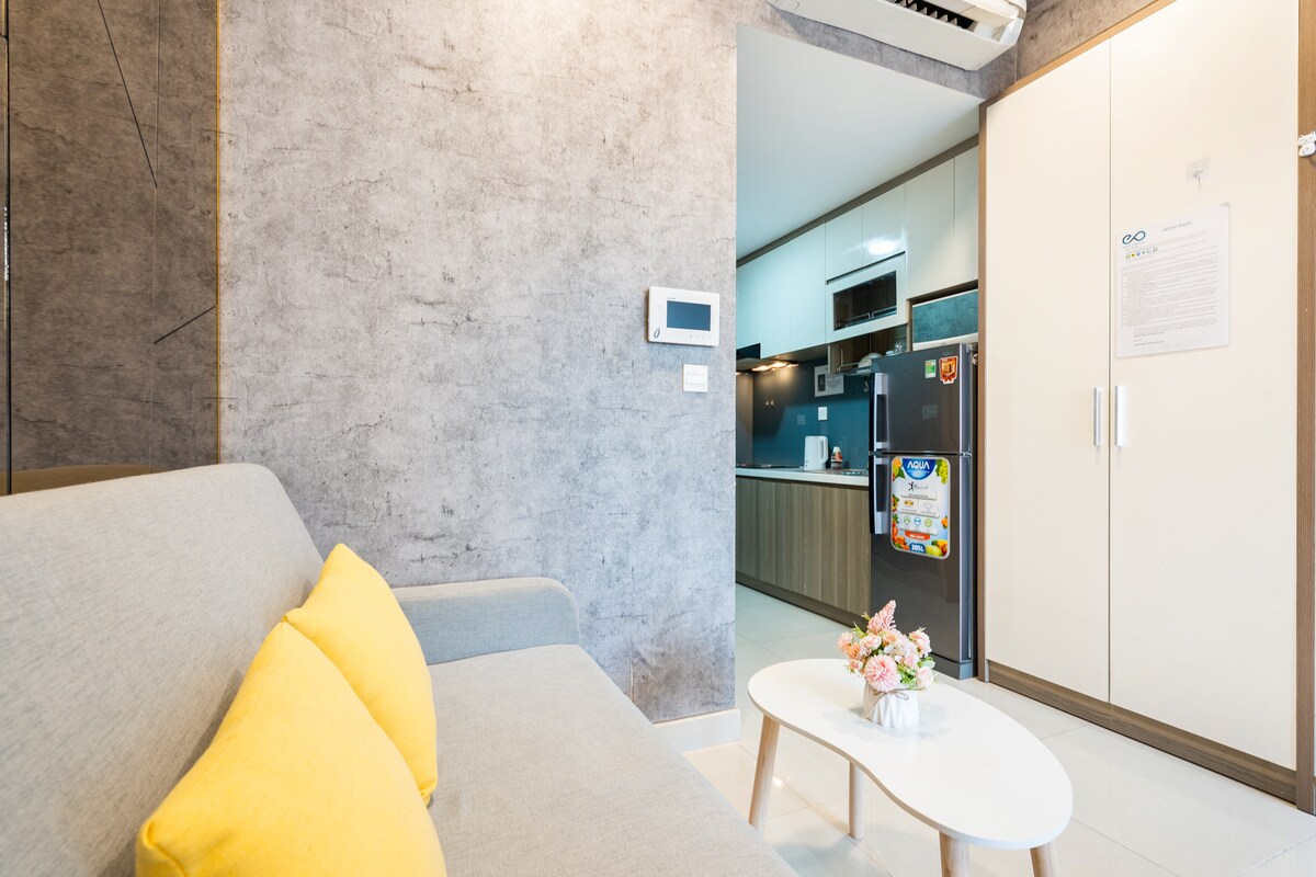 This stylish place to stay is perfect for your trips. THE STUDIO APARTMENT (14th floor) WITH GORGEOUS VIEW This apartment is 28 sqm and located in luxury and famous building of the center of SAIGON. ## PERFECT LOCATION ★05 mins to District 1; 07 mins Bui Vien street; 10 mins to city centre and Ben Thanh market by taxi/Grab. AIRPORT PICK-UP SERVICE WITH FEE.