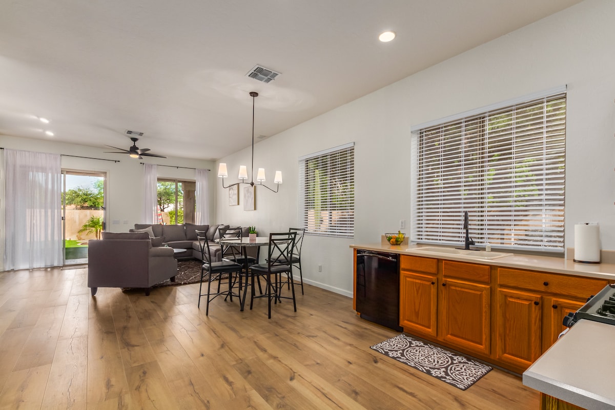 Զգացեք Արիզոնայի Սոնորան անապատի գեղեցկությունը Գլենդելի Էռոուհեդ ռանչոյի տարածքում գտնվող այս 3 ննջասենյակով, 2,5 լոգասենյակով տանը ։ Մեր գեղեցիկ տունը կատարյալ է հանգստի համար և ընդամենը մի կարճ ճանապարհ է դեպի գոլֆի դաշտեր, ֆանտաստիկ ռեստորաններ, զբոսայգիներ, ընդամենը 10 րոպե մինչև Westgate, AZ Cardinals մարզադաշտ, ինչպես նաև Seattle Mariners և LA Dodgers գարնանային ուսումնական հաստատություն: Մենք ունենք տարածք, որը բավարարում է ձեր խմբի բոլոր կարիքները: Կատարյալ է երկարաժամկետ այցի համար