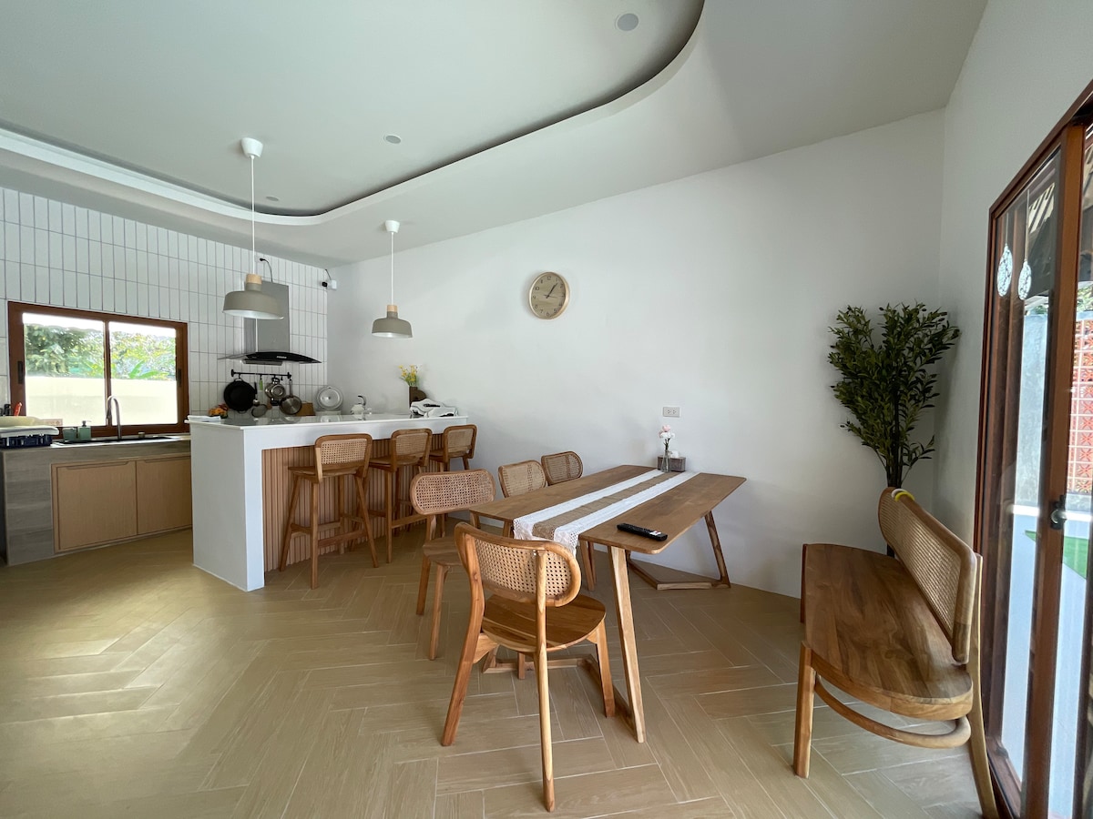 Ստանդարտ 3 ննջասենյակ | 4 լոգասենյակ | 1 հյուրասենյակ | 1 աղոթասենյակ | Ավտոկայանատեղի 3-4 մեքենայի համար Եթե ամրագրում եք 13 կամ ավելի հյուրերի համար, մենք հատուկ կպատրաստենք 4-րդ ննջասենյակը։ 🏠 Ընդարձակ տուն քաղաքի կենտրոնում և 🌙 մուսուլմանների համար։ 📍3 րոպե մեքենայով մինչև Central Festival և ASEAN Night Bazaar 📍7-Eleven խանութից, Mini Big C-ից և տեղական սննդի կրպակներից 3 րոպե քայլելու հեռավորության վրա 📍7 րոպե մեքենայով մինչև «Լի Գարդենը», «Մակրոն» Տուկ-տուկը անցնում է։
