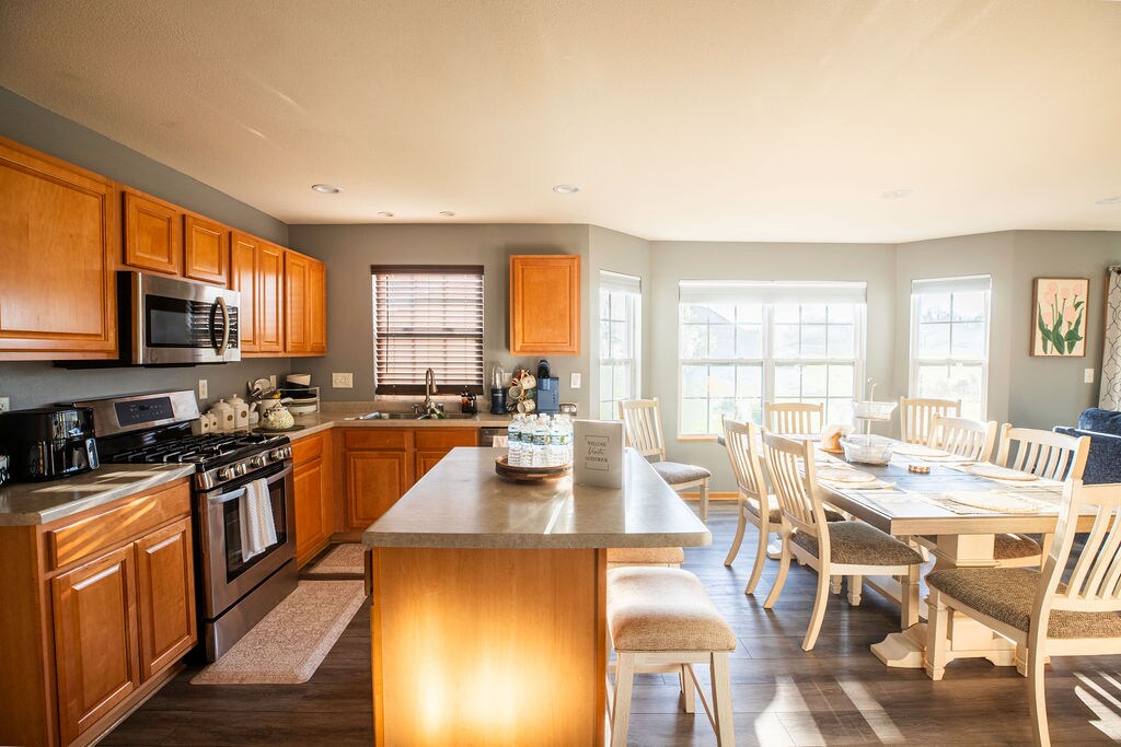 Wake up to the sunrise over a peaceful backyard and enjoy your favorite blend on your private balcony. Evenings are perfect by the fire pit under a starry sky. This renovated home has gas stove/oven, microwave, coffee maker, full-size fridge/freezer, in-unit washer & dryer, smart TV, and Wi-Fi - ideal for couples, small families, or traveling professionals. Only 1 mile from I-94 and 20 minutes from Milwaukee, blending quiet comfort with city convenience.