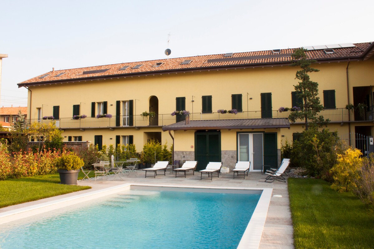 10րոպե/Մալպենսա օդանավակայանը ամբողջովին վերանորոգված հին բակ է: Բակը ներառում է ամառային ամիսների համար նախատեսված լողավազան և 14 կահավորված և հարմարավետ բնակարաններ քաղաքի կենտրոնից և երկաթուղային կայարանից 5 րոպե հեռավորության վրա: RHO Fiera: 20min. Գնացք/Car MILAN: 35min. Գնացք/Ավտոմեքենա