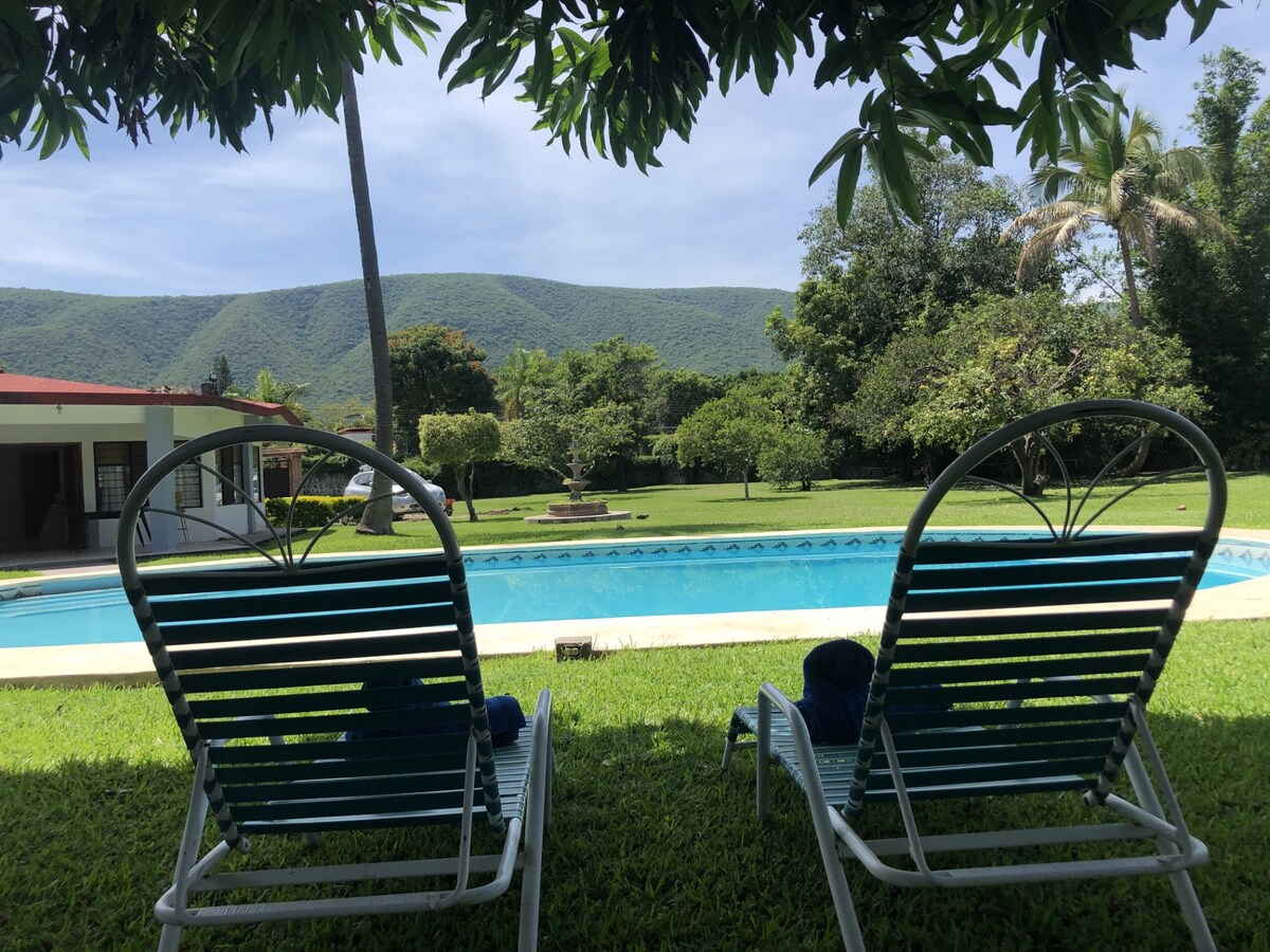 Այն Կինտա է ավելի քան 2000 մ2 հողի վրա, ունի շատ ընդարձակ և հաճելի այգիներ ՝ բնությունից կամ քեմփինգից օգտվելու համար: Ուզո ՞ ւմ եք անջատվել առօրյա կյանքից ։ Սա լավագույն վայրն է ձեզ համար, քանի որ այն շքեղ տուն չէ, բայց ունի հանգստյան օրերը վայելելու հիմնական հարմարությունները ՝ ընկերների կամ ընտանիքի հետ, և ունի նաև առանձին լողավազան: Հետաքրքիր վայրեր ՝ Լաս Էստակաս, Six Flags Hurricane Harbor, El Rollo, Tepoztlán, Yautepec, Cocoyoc, Cuautla, Cuernavaca, Oaxtepec, Tequesquitengo ։