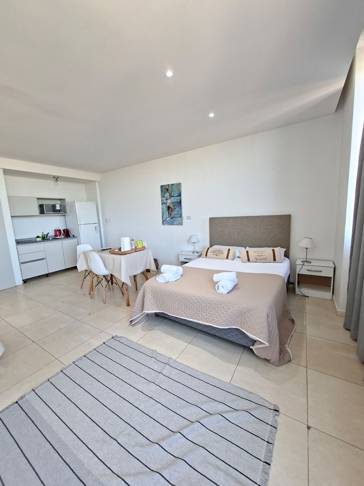 Departamento nuevo en el distrito de arte de Tigre. A tres cuadras del puerto de frutos y a siete cuadras del parque de la costa. Cuenta con cochera cubierta, espacio para 4 huéspedes y cuna para bebe. Además, posee amplio balcón con parrilla. New, modern, condo located in beautiful Tigre, close to all amenities, restaurants, and famous Puerto de Frutos. Covered parking, spacious balcony, and your own Argentinian grill to enjoy an asado. Sleeps 4, baby crib available. Host is fluent in English.