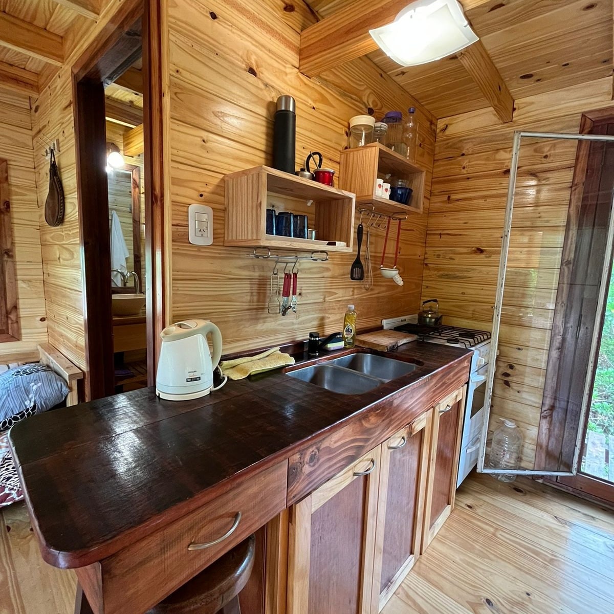 Cabaña Despertar տարածքը La Curandera , Arroyo Rama Negra Chico. Հողը ներքին է, պիրսից մեկ թաղամաս ՝ դեպի գետ տանող մուտքով և 10 րոպե քայլելով այնտեղ, որտեղից հեռանում է կոլեկտիվ նավակը ։ Տնակի հատվածում կա տախտակամած ՝ լողավազանով, սոլյարիով և գրիլով ։ Տնակն ունի 20 քմ մակերես, ննջասենյակ ՝ երկտեղանի մահճակալով և հյուրասենյակի խոհանոցով ՝ մահճակալով և սայլակով մահճակալով ։ Կարողություն 4 անձի համար: Էլեկտրական ջեռոց, գազօջախ, սառնարան, լոգարանով և տաք ջրով լոգարան: Wi - Fi խանութ մոտակայքում ։