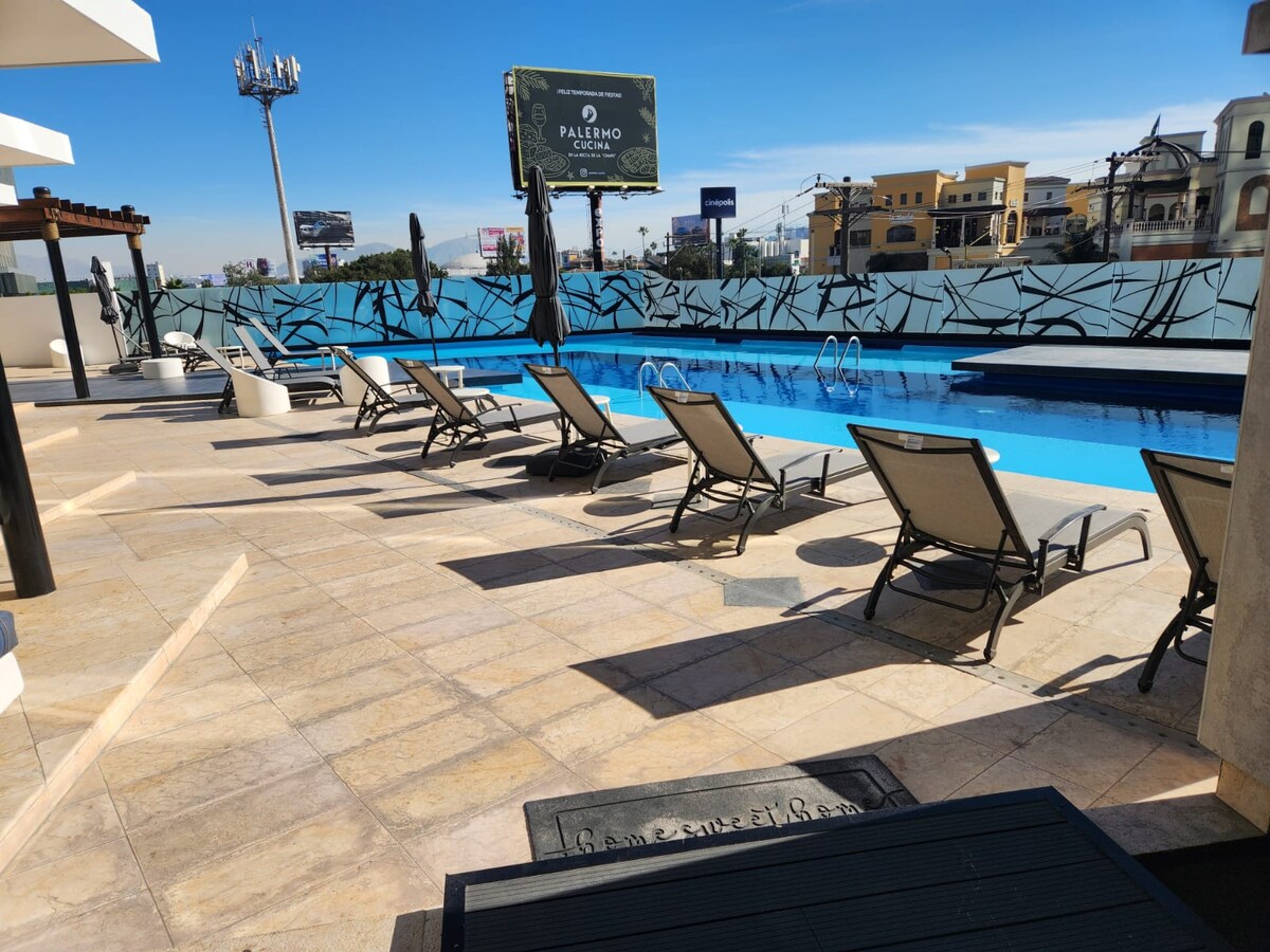 This stylish apartment sits right on Avenida Revolución, the city’s most iconic street, surrounded by top restaurants, cafés, bars, and vibrant nightlife. Inside, you’ll find modern décor, premium amenities, and ultra-comfy furniture, perfect for unwinding after a day of exploring. But the real highlight? The incredible shared spaces! A fully equipped gym to keep up your routine. An indoor pool for a refreshing dip. A sleek business lounge for work or meetings.