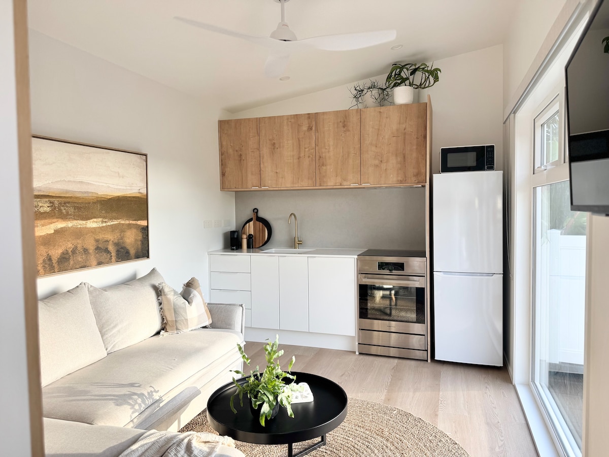 Fully renovated guest suite just 2 minutes walk from the town basin and Hundertwasser. Guest suite has a private entrance with car-parking space and a private patio featuring mountain and river views. Both the main bedroom and sitting room are equipped with Smart TVs. Full wifi coverage is provided with Ultra Fast Broadband. Kitchenette includes a mini-fridge, microwave, toaster and kettle along with basic cutlery.