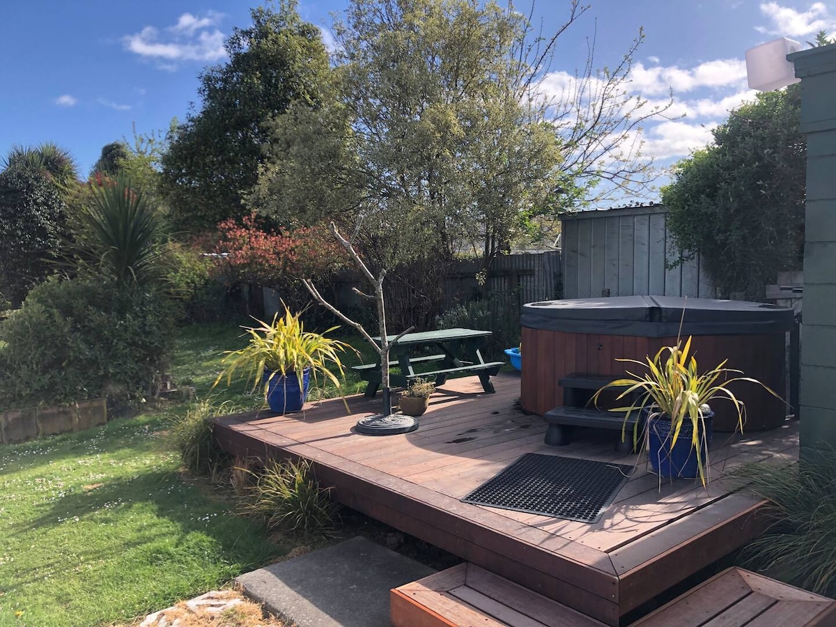 PUKEKO COTTAGE: is a comfortable, sunny, family friendly home just 3 mins' walk to shops, cafes & a supermarket. Playground, pool & domain are directly across the road. Enjoy a safe, large fenced garden for kids to play outside while you relax. HOT TUB, bbq and outdoor dining with hill views. Inside offers a king ensuite room, queen room, bunk room and sofabed. Wood-fire & 2 heatpumps. Fully eqiupped kitchen. Toys/ bikes/ pram/ highchair/portacot. 100 mins from CHCH airport, 70 mins to Tekapo.