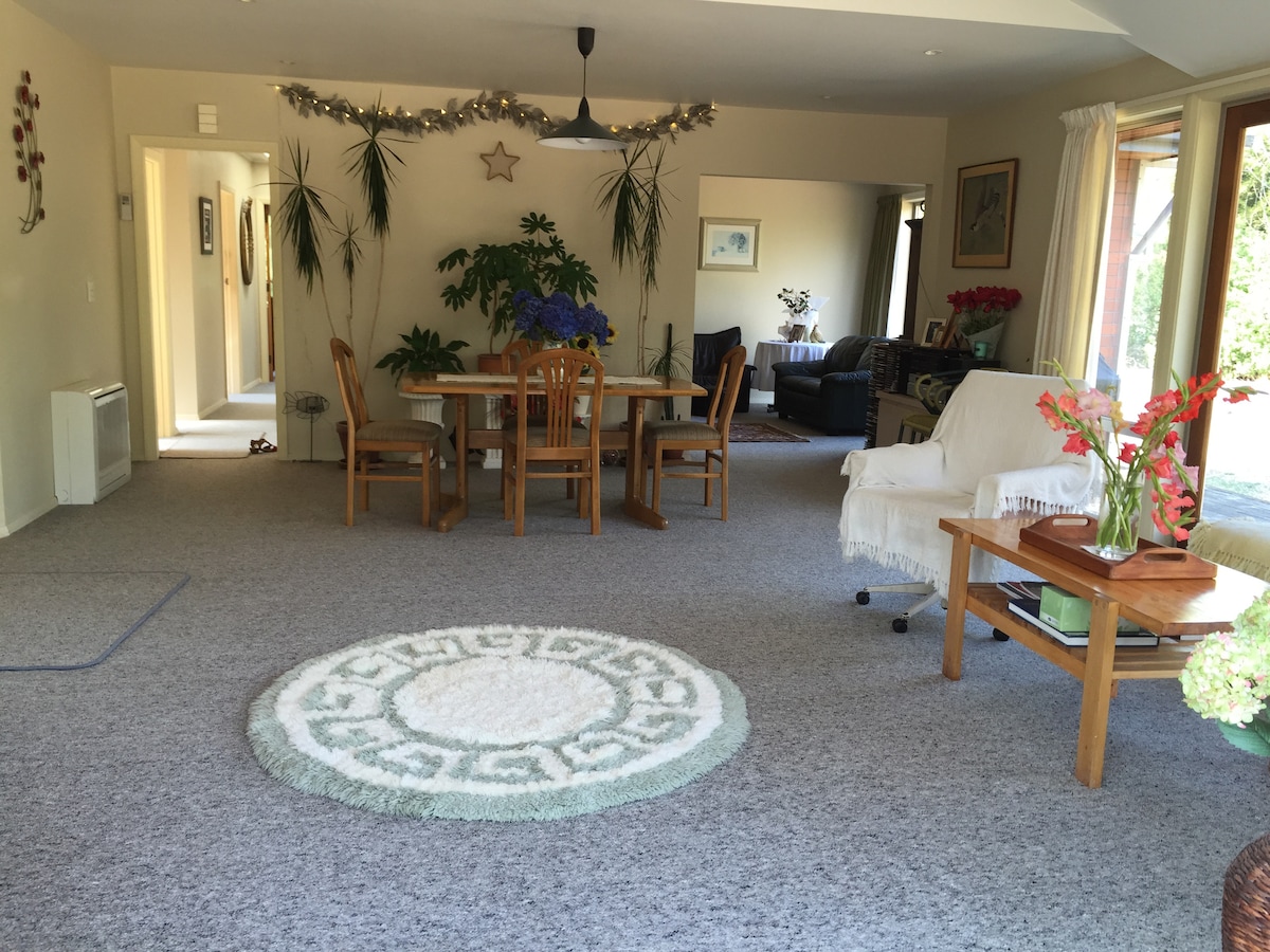 Այս հսկայական ճարտարապետորեն նախագծված տունը կառուցվել է 80 - ականներին և վերջերս վերանորոգվել է նոր ներկով, նոր հատակով, վարագույրներով, լոգասենյակներով և խոհանոցով: Սա կատարյալ տարբերակ է մեծ ընտանիքի կամ խմբի համար, որը ցանկանում է մոտ լինել քաղաքին, բայց միևնույն ժամանակ վայելել Հարավային Քենթերբերիի գյուղական վայրի խաղաղությունը: 10 րոպե դեպի Տիմարու Քիթչեն և գեղեցիկ Կարոլին Բեյ, 8 րոպե դեպի Փլեզընթ Փոինթ, 25 րոպե դեպի գեղեցիկ Ջերալդին և ընդամենը մեկ ժամ դեպի Ֆլորիդայի շքեղ զբոսաշրջային վայր: