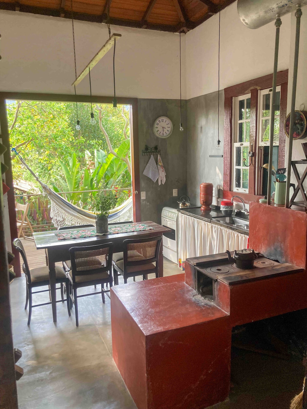 Զգացեք Տիրադենտեսի հմայքը մեր գաղութային ոճի տանը, որը գտնվում է Ալտո դա Տորե թաղամասում: Հանգստացեք տախտակամածի վրա, որտեղից բացվում են Սեռա դե Սան Խոսեի ցնցող տեսարանները և վայելեք թթի, Սուրինամի բալերի և կիտրոնի ծառերով պարտեզը ։ Մենք հպարտորեն հարմար ենք տնային կենդանիների համար և տրամադրում ենք հյուրանոցային որակյալ անկողնային և լոգարանի սպիտակեղեն, գերարագ ինտերնետ և լիովին կահավորված խոհանոց ՝ կենցաղային տեխնիկայով, ինչպիսիք են օդի տապակիչը, մանղալը և սրճեփը ։ Տարածք, որը նախատեսված է ձեզ ինչպես տանը զգալու համար ։