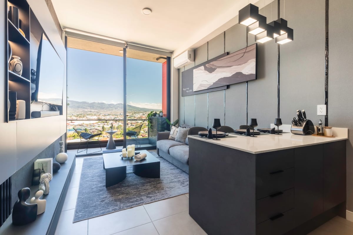 SJO օդանավակայանից ընդամենը 9 կմ հեռավորության վրա ։ Ռոմանտիկ և նրբագեղ լոֆթ ցնցող համայնապատկեր ունեցող զույգերի համար ։ Երկարատև թռիչքից հետո կամ տուն վերադառնալուց առաջ հանգստանալու կատարյալ վայր ։ Հանգստացեք ջակուզիում ՝ վայելելով հիասքանչ տեսարանը, և առավելագույն հարմարավետության համար օգտվեք հեռուստացույցից, օդորակիչից և ավտոմատացված սև վարագույրներից ։ Airbnb - ն գտնվում է Պիլասում, Սան Իսիդրո դե Ալաջուելա