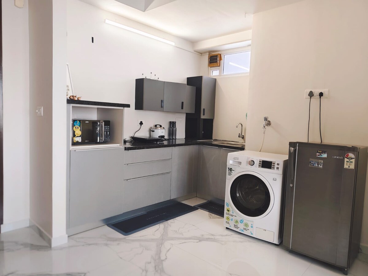 Where Elegance meets Simplicity In a very calm Locality 2 Bedrooms with 2 beds. 1 Bathroom Patio style Kitchen , out door sit out with coffee table. GrnStay is at 2nd floor, Stair Case Only, Pent house style Spacious living Room. Bedrooms & Hall equipped with AC kitchen with kettle, Mixer, microwave, Gas , Refrigerator Neat & Clean Bedrooms Hygienic Bathroom A well maintained clean & Soothing place Near by places Anna Tower, Ayyappa Temple, Tower Metro Station,