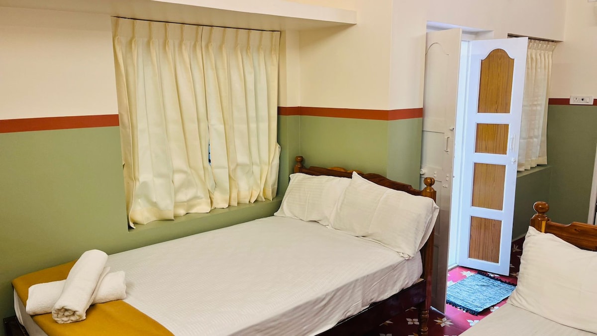 peaceful and pleasant ✨️less than 1km from Ramana Ashram and 2.3 km from temple. Autos are always available from guest house to temple 🛕 we also have Ac rooms with mountain view in first floor , second, third floor. If you want Ac rooms dm us, Will provide you the link. Note: Car parking outside the premises, cctv enabled * keys you can get in reception