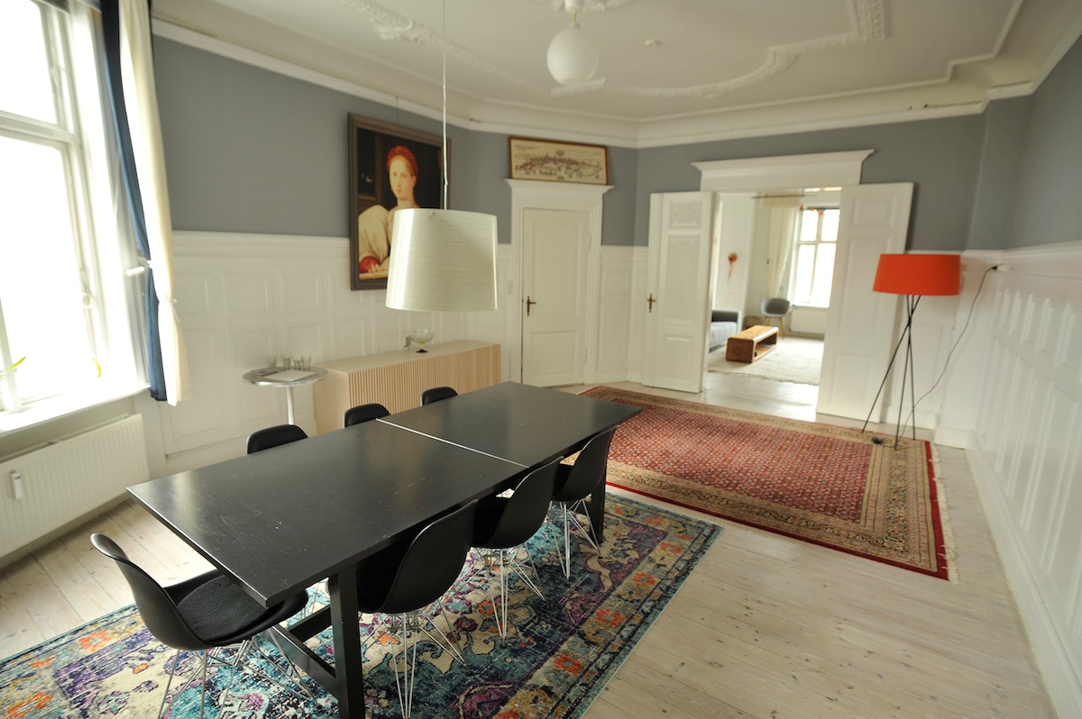 Յուրահատուկ և հոյակապ մասնավոր բնակարան անկրկնելի վայրում ՝ Ներքին Կոպենհագենի միջնադարյան տարածքի սրտում ։ Ձեր սեփական «քաղաքային տունը »՝ առանձին մուտքով ։ Բարձրակարգ շքեղություն, որը տարածվում է ավելի քան 140 քմ, դուք մնում եք ֆյուժն արվեստի պատկերասրահի շքեղ բնակարանում Դիզայներական կահույք, ձեռքով կառուցված խոհանոց, փայտե հատակներ. բարձր առաստաղներ, կոնտեմպ. արվեստ: Պատմական կալվածք, որը կառուցվել է 1789 թվականին ՝ մեկ անգամ թատրոն Այս վայրը կատարյալ է նաև ավելի երկար կամ ավելի կարճ ժամանակահատվածների գործնական հանդիպումների կամ աշխատանքային այցերի համար