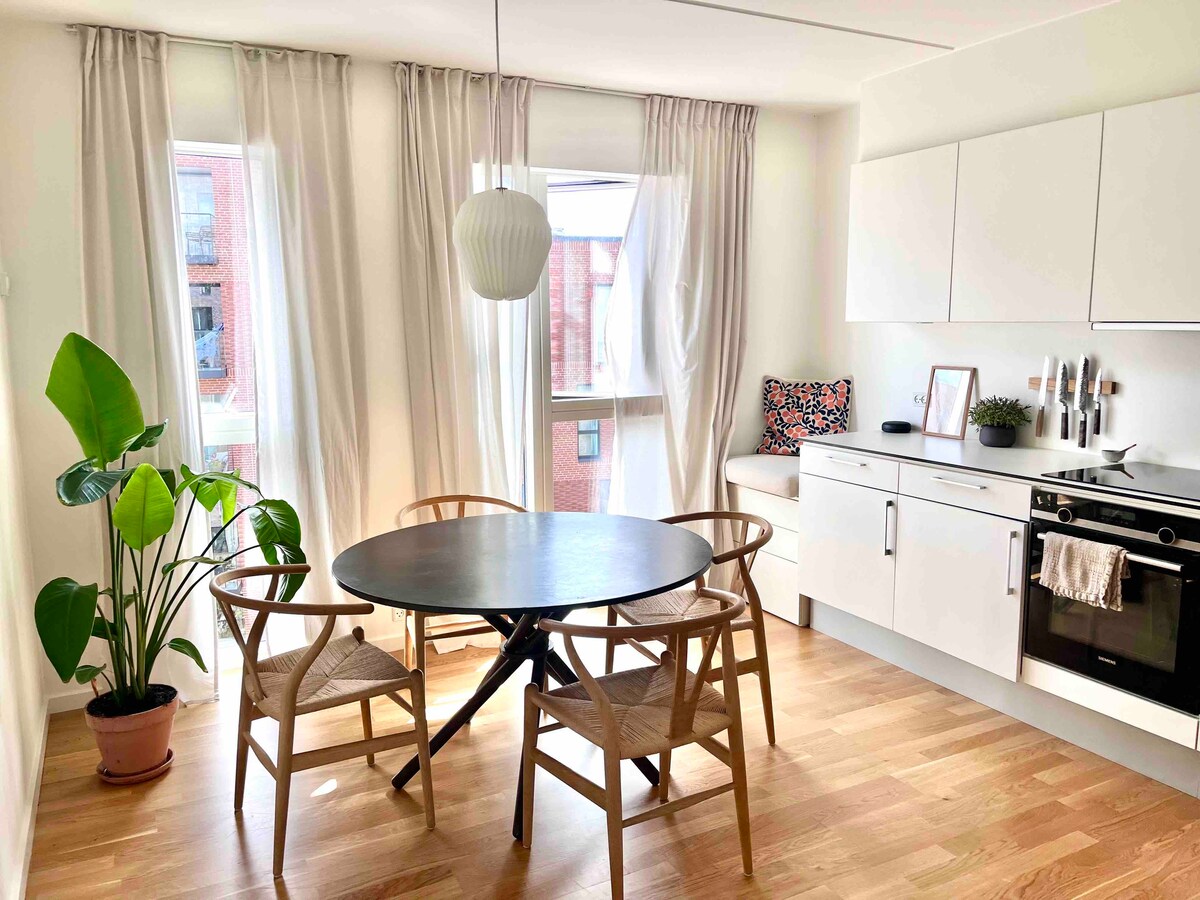 Հարմարավետ, ավանդական և լավ հարմարեցված բնակարան Քրիստիանսհավնում (2 սենյակ - 53 քմ): Գտնվում է Քրիստիանսհավնի կենտրոնական, խաղաղ փողոցներից մեկում, քաղաքի կենտրոնը քայլելու հեռավորության վրա է: Քրիստիանսհավնի ջրանցքի յուրահատուկ տեսարան: Բացահայտեք գեղեցիկ տեղական միջավայր՝ լավ խանութներով, սրճարաններով և մշակութային կյանքով և Քրիստիանիայի ազատ քաղաքով: Հանգստի գոտի՝ վազելու համար, հենց դռան մոտ: Մի քանի րոպե քայլելու հեռավորության վրա մետրոյից և ավտոբուսից: 15 րոպե մետրոյով օդանավակայանից: Հարմար է միայնակ ճամփորդների համար, բայց կարող է տեղավորել մինչև չորս հյուր: