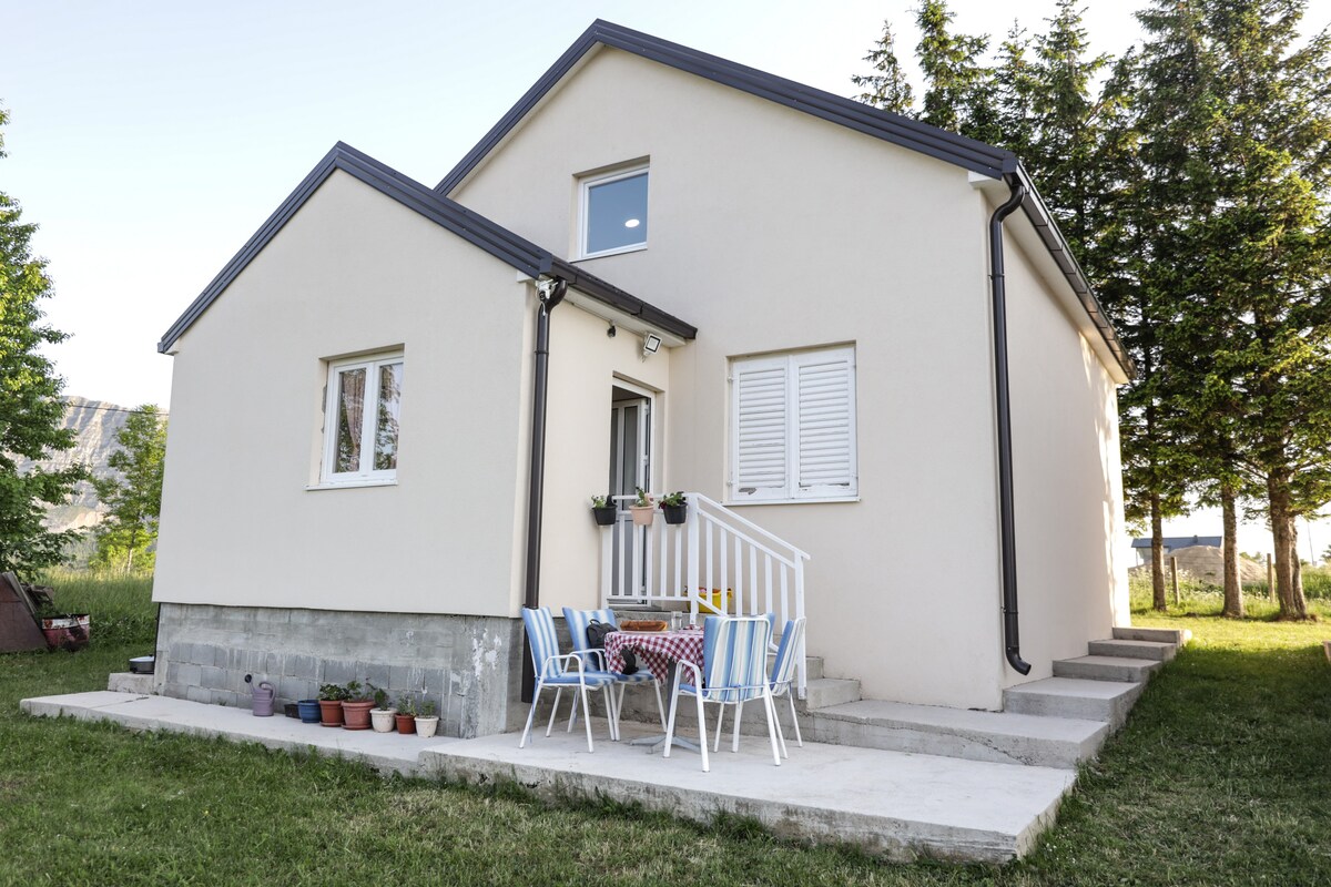 Հանգստացեք ամբողջ ընտանիքով այս խաղաղ վայրում ։ Լիովին կահավորված փայտե տուն, որը փռված է ծառերի մեջ ։ Այն ունի մեծ մարգագետին և կտուր, որտեղից բացվում է հիանալի տեսարան դեպի ժայռեր և անտառներ ։ Իդեալական վայր է Դուրմիտոր ազգային պարկի մաս կազմող լեռան վրա գտնվող հանգստի, հանգստի, զբոսանքի և արկածների համար: Մենք ուրախ ենք, որ ձեզ ընդունում ենք որպես մեր հյուրեր::)