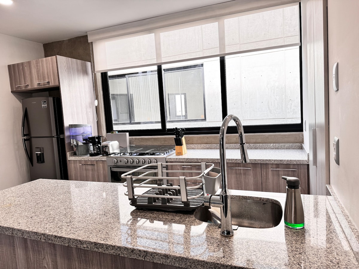 Բացահայտեք Ռոմա Նորտի աշխույժ սիրտը այս ստուդիայի բնակարանում: Կատարյալ կերպով տեղակայված լինելով Մեխիկոյում ՝ դուք մի քանի քայլ հեռու կլինեք գնումներից, ճաշելուց և մշակութային տեսարժան վայրերից ։ Վայելեք ժամանակակից հարմարությունները, այդ թվում ՝ լիովին կահավորված խոհանոցը և Hi - Speed Wi - Fi - ը, իդեալական է գործնական կամ ժամանցային ուղևորների համար ։ Այս բնակարանն առաջարկում է հարմարավետություն և հարմարավետություն հիմնական վայրում ։ Զգացեք քաղաքի լավագույն կենսապայմանները ։