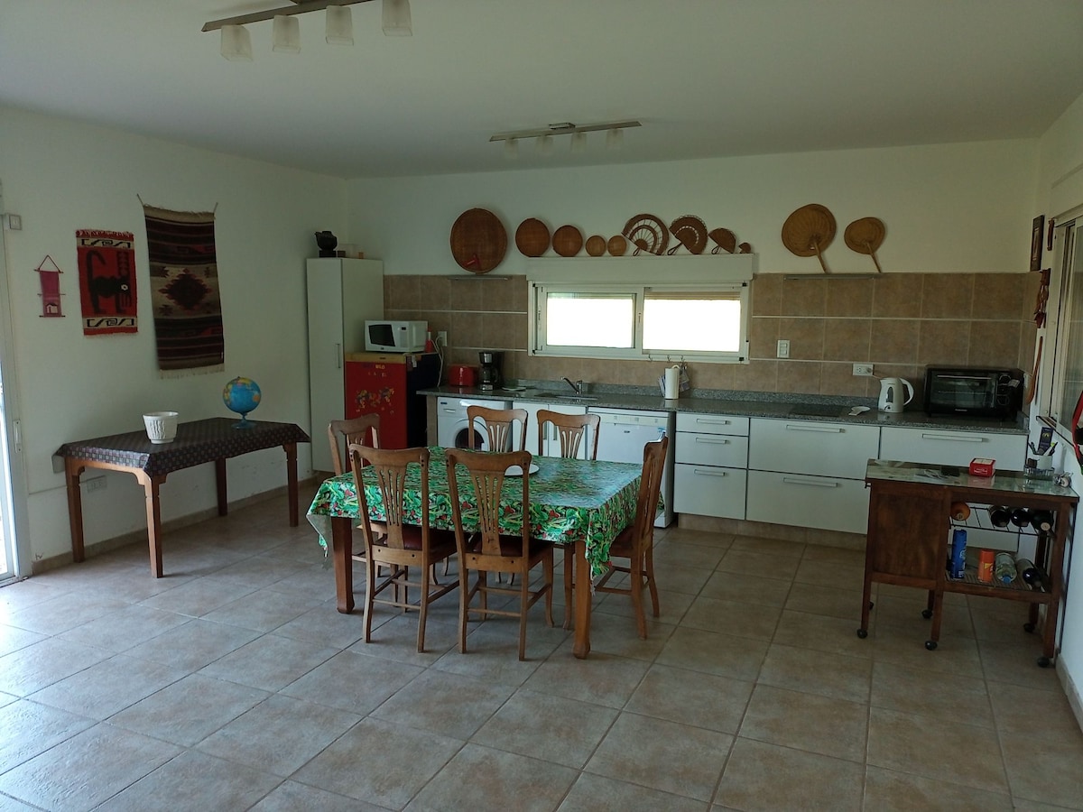 Casa de campo moderna y confortable en una hectárea de campo con vistas excepcionales a los bosques de calden. Situada a sólo 15 minutos de Santa Rosa y a 5 del autódromo, es ideal para un fin de semana de relax o para hacer etapa en el camino hacia el sur. Seguridad y tranquilidad totales. Dispone de una cama doble, una cama marinera y un sofá cama doble. Cocina moderna totalmente equipada y parrilla cubierta. Dos ambientes muy espaciosos con AC. Diseño bioclimático y Internet starlink.