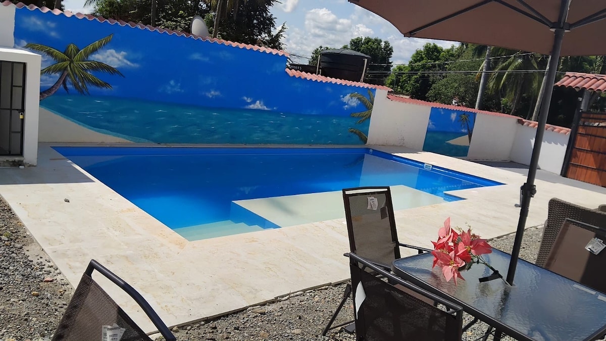 Reconecta con lo esencial en casa verde, a 2 horas y media de Bogotá, el espacio perfecto para un fin de semana inolvidable. Disfruta un asado en la zona BBQ, o la cocina totalmente equipada. La piscina es perfecta para refrescarte, o si prefieres puedes disfrutar los juegos de mesa, ping pong o bolirana. Ubicado sobre la vía principal de fácil acceso. Un ambiente campestre privado rodeado de árboles frutales en el que solo debes llegar a disfrutar; el primer día incluye personal de servicio.